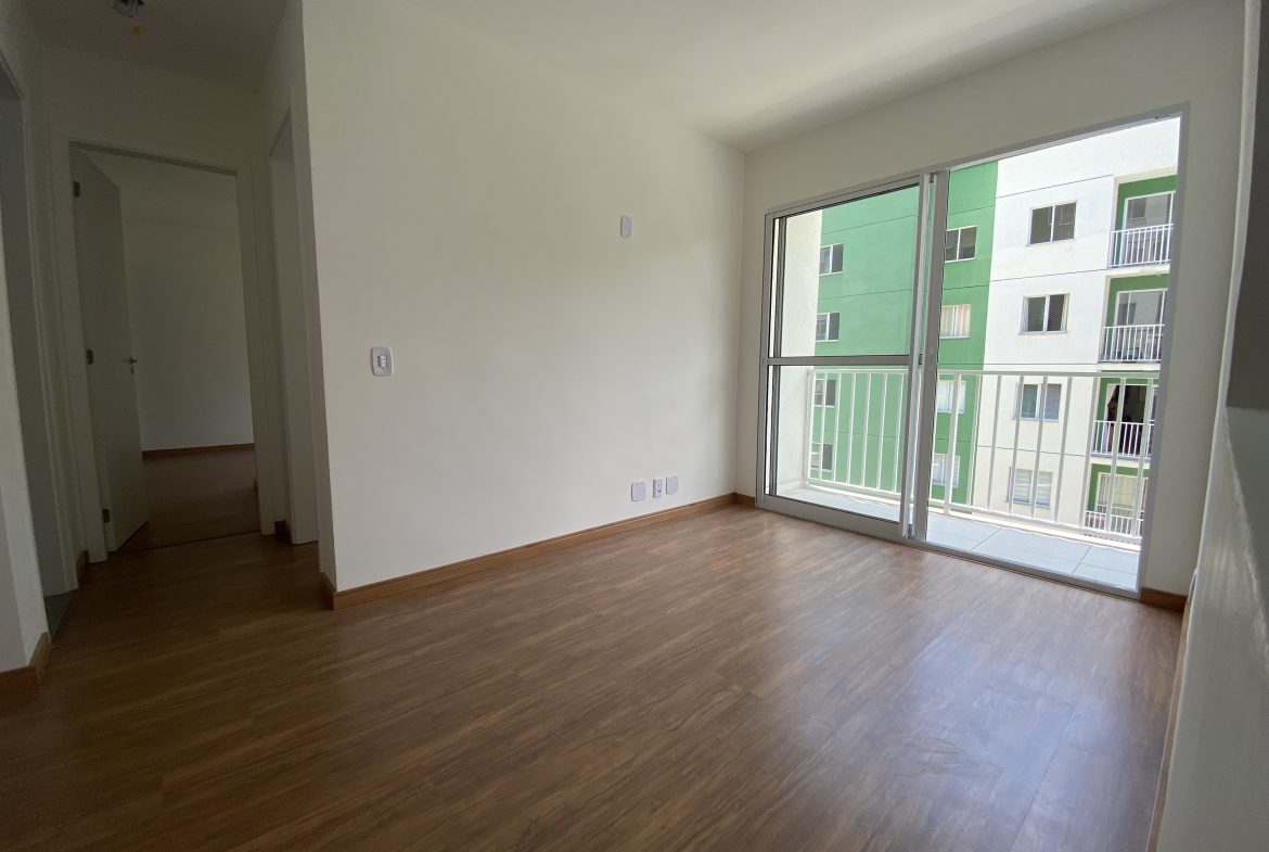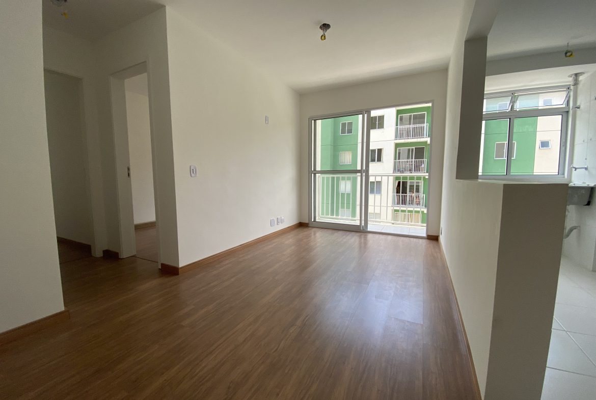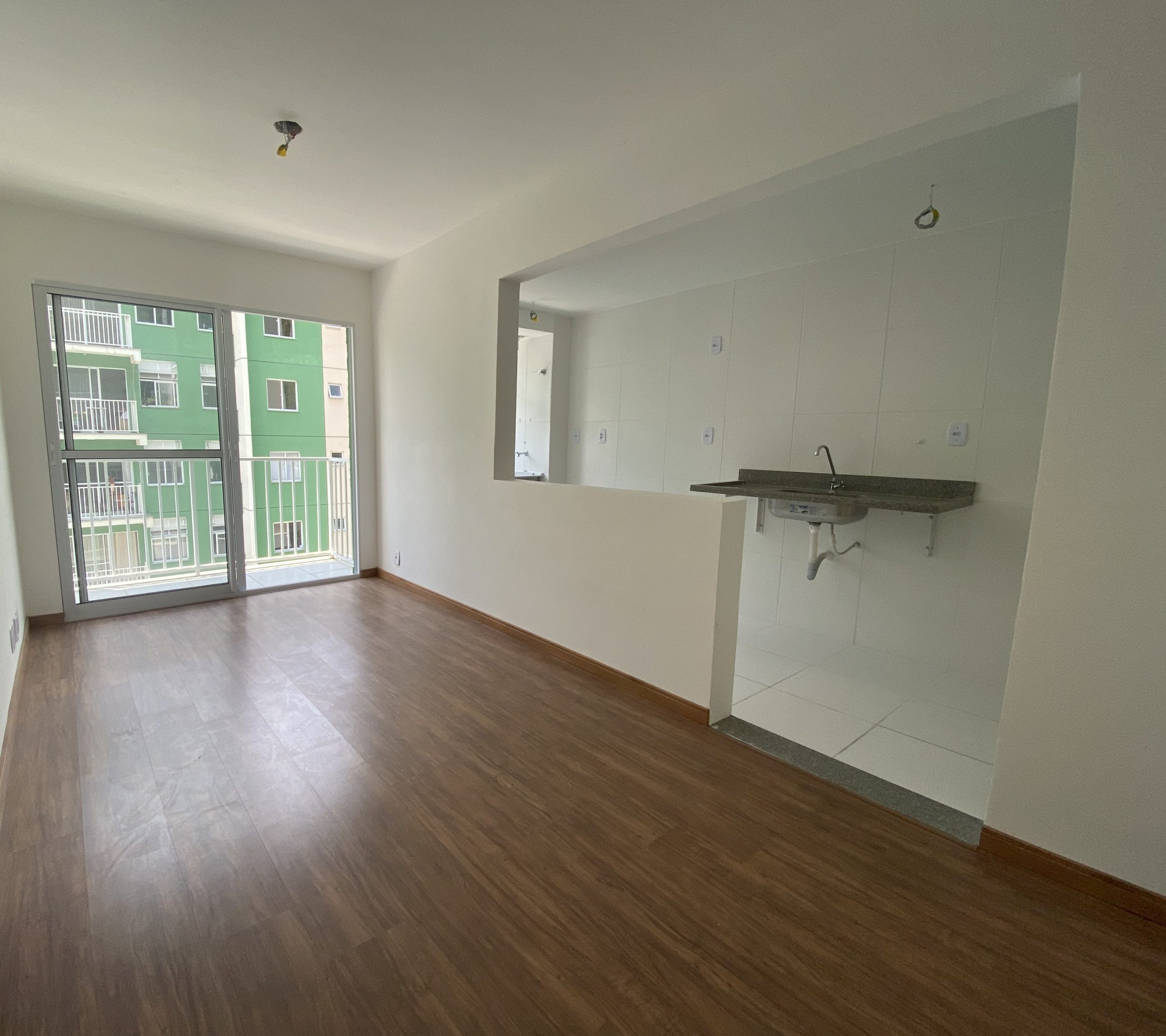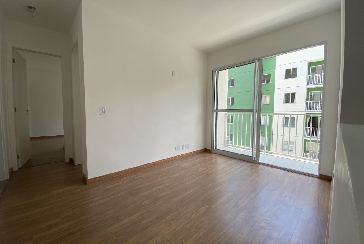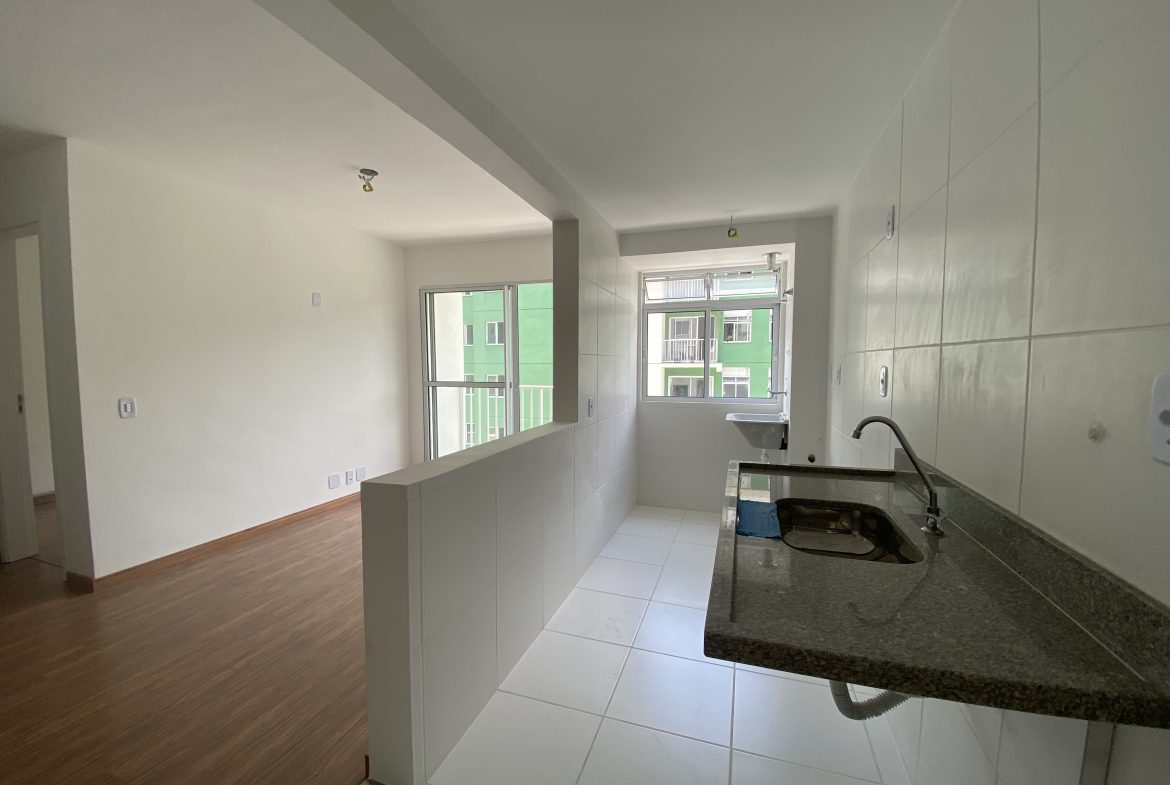 O apartamento é composto por 2 quartos, sala ampla em conceito aberto com cozinha, varanda e uma vaga de garagem.