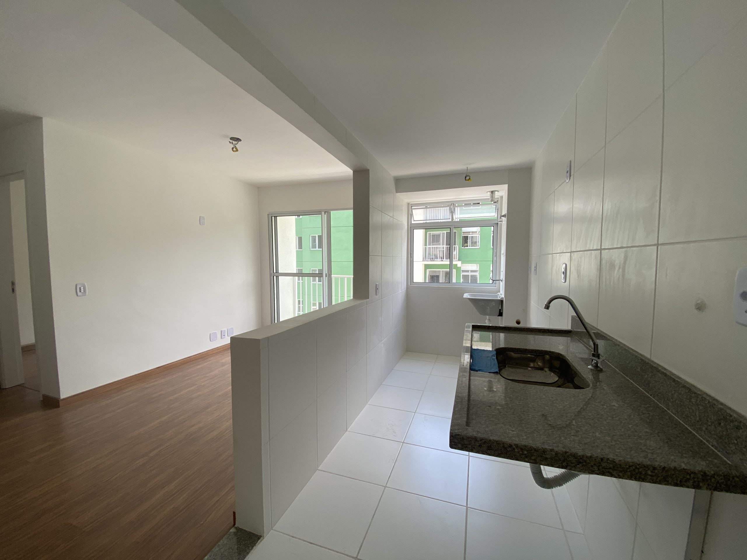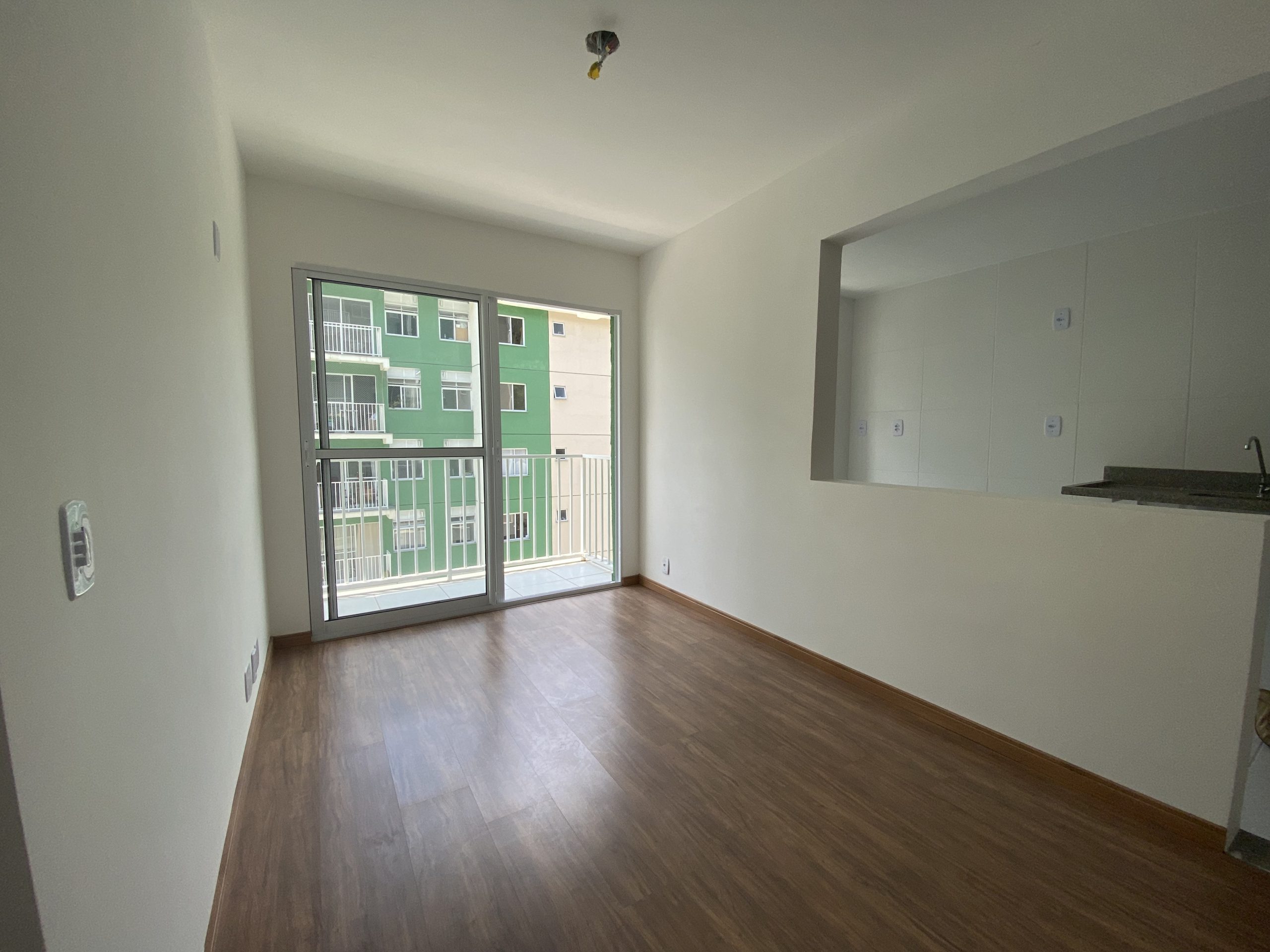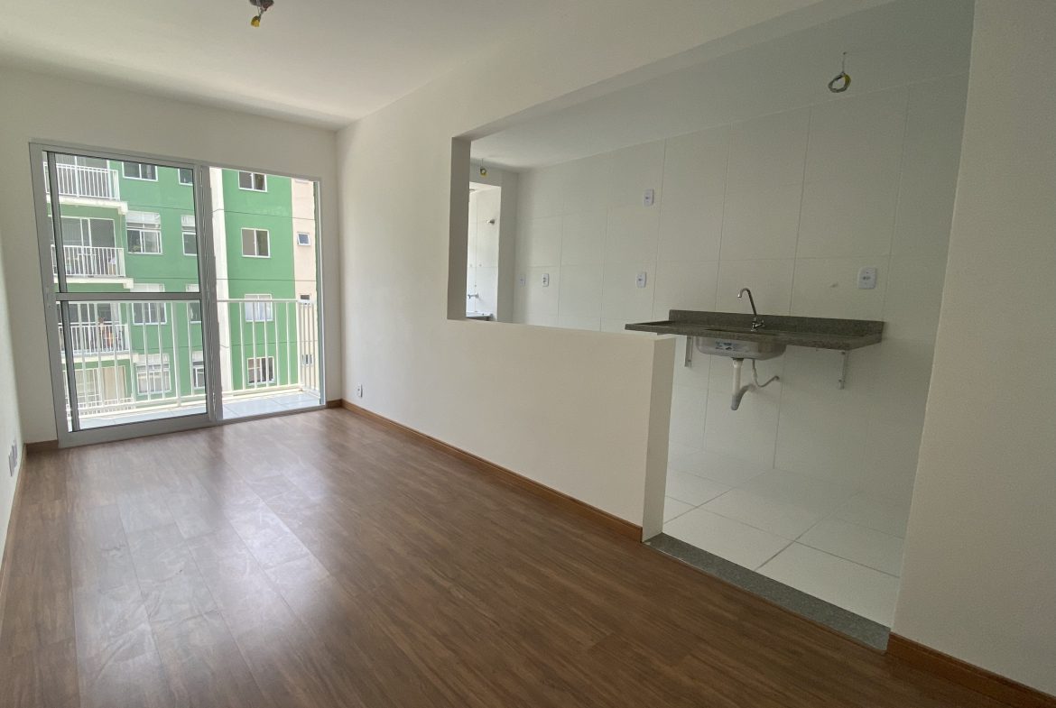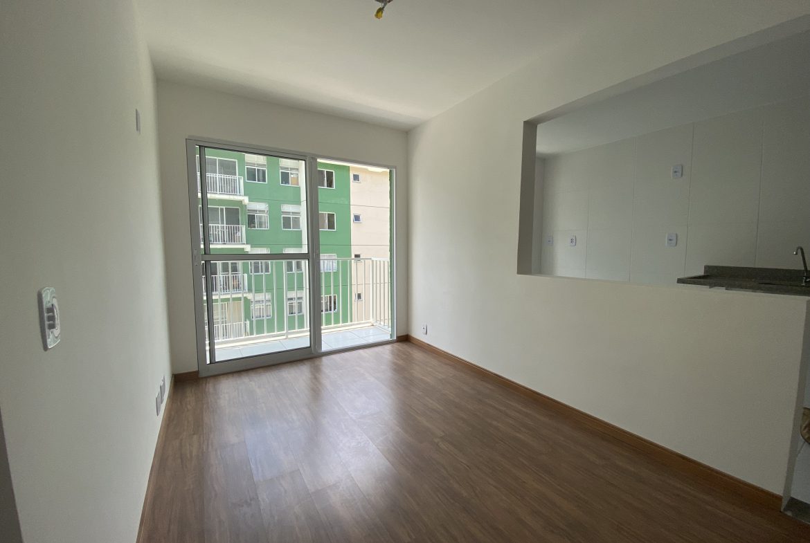 O apartamento é composto por 2 quartos, sala ampla em conceito aberto com cozinha, varanda e uma vaga de garagem.