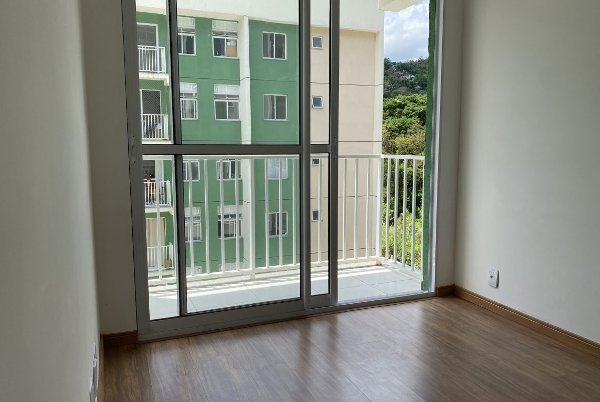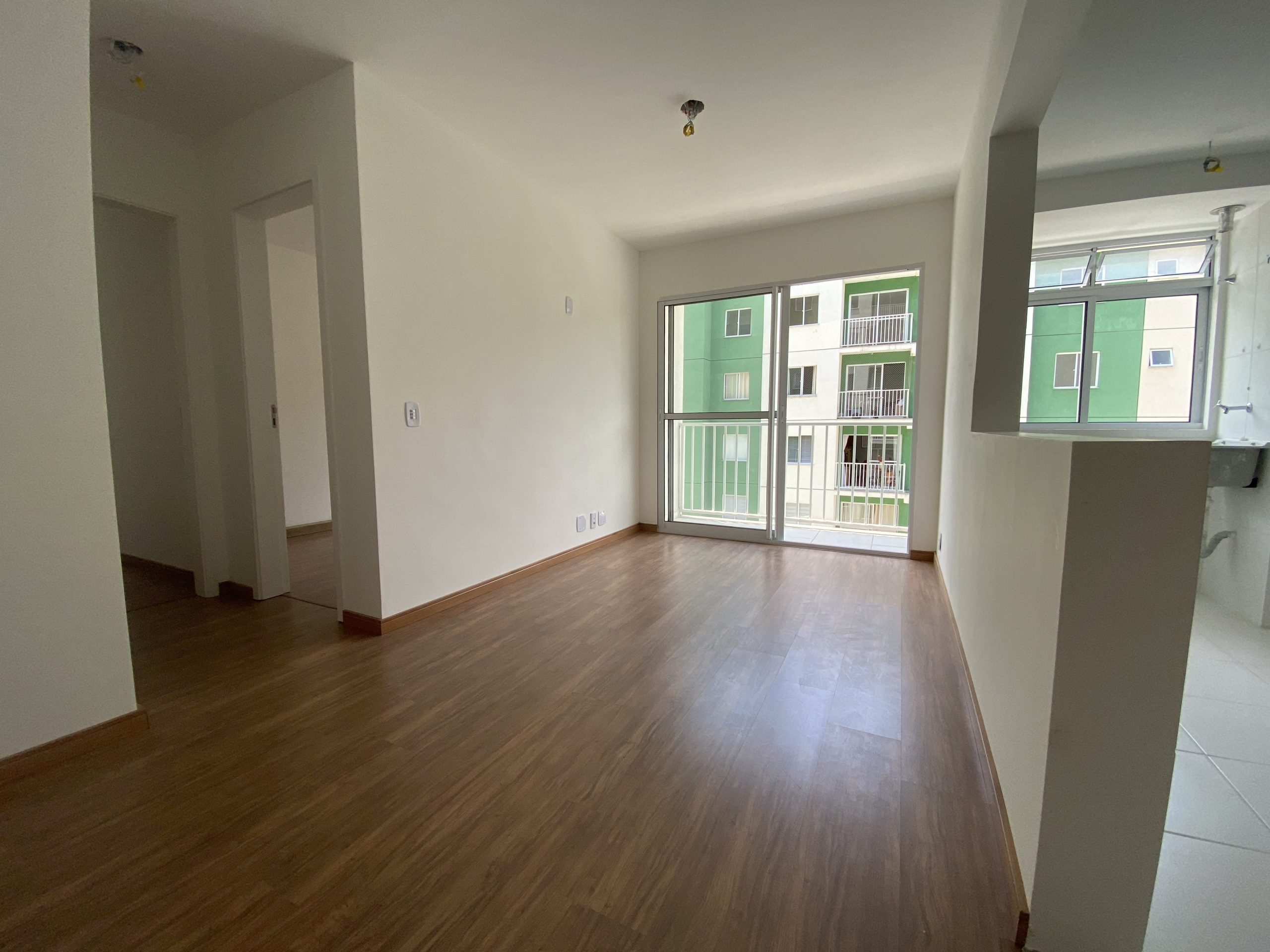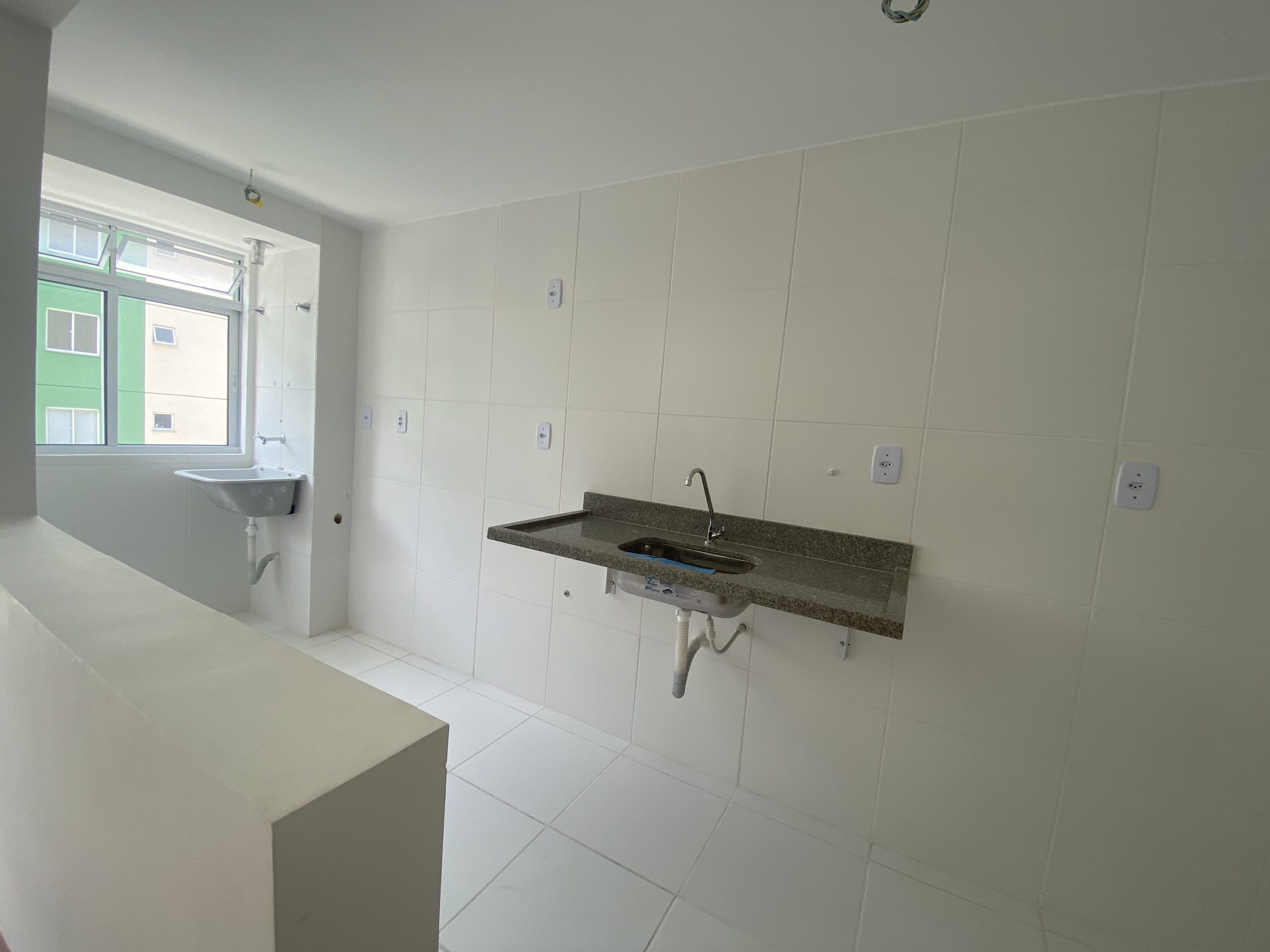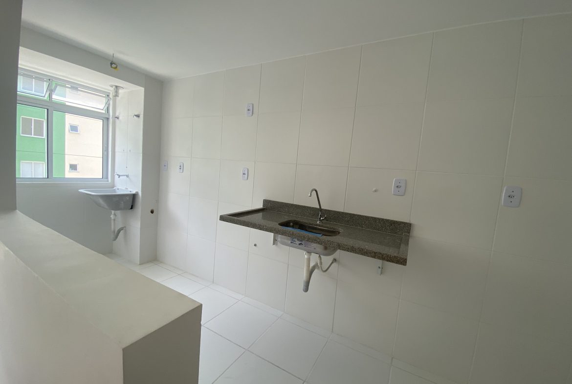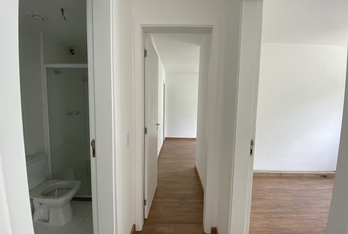 O apartamento é composto por 2 quartos, sala ampla em conceito aberto com cozinha, varanda e uma vaga de garagem.