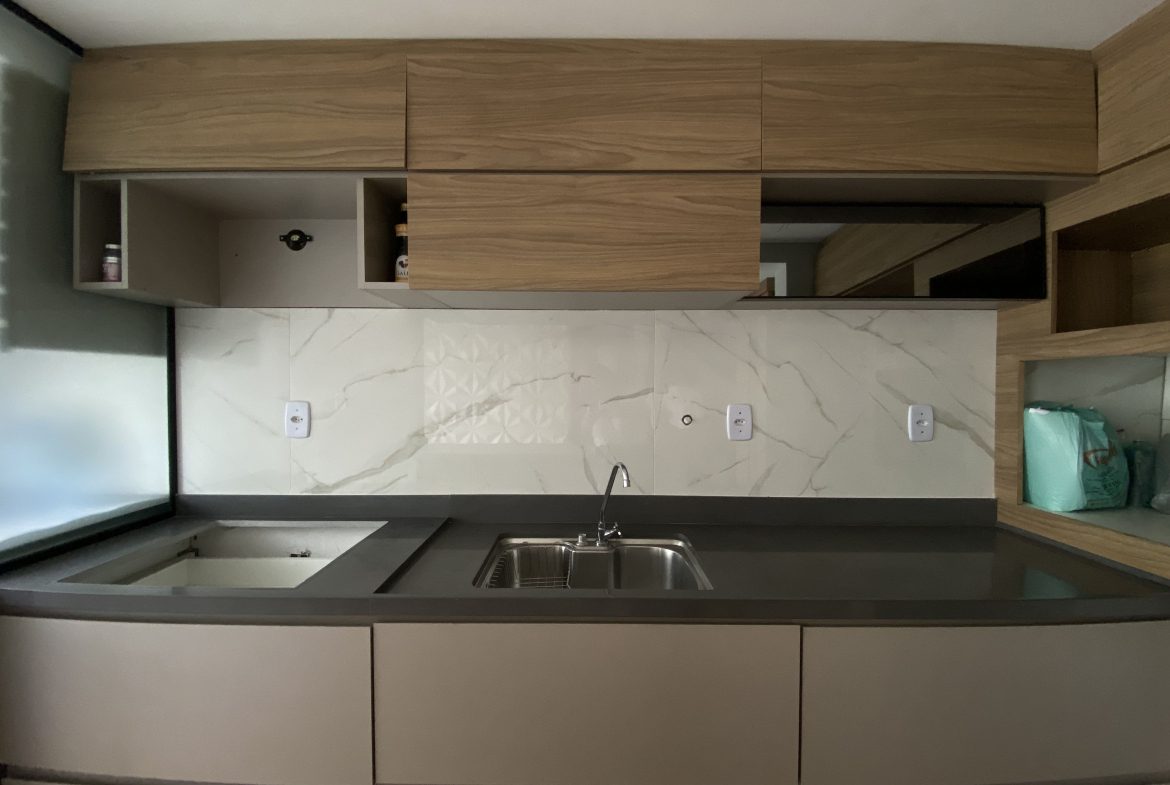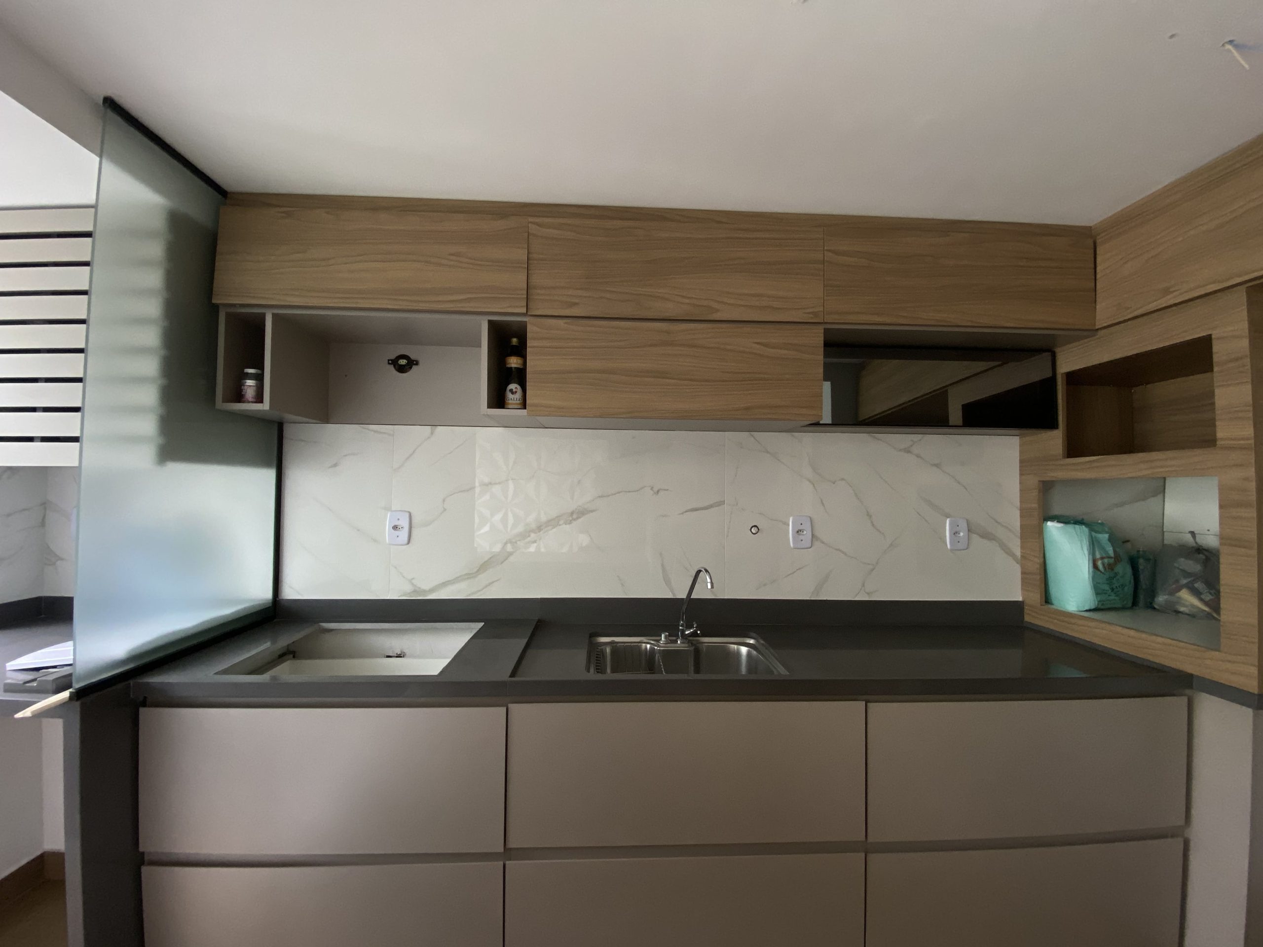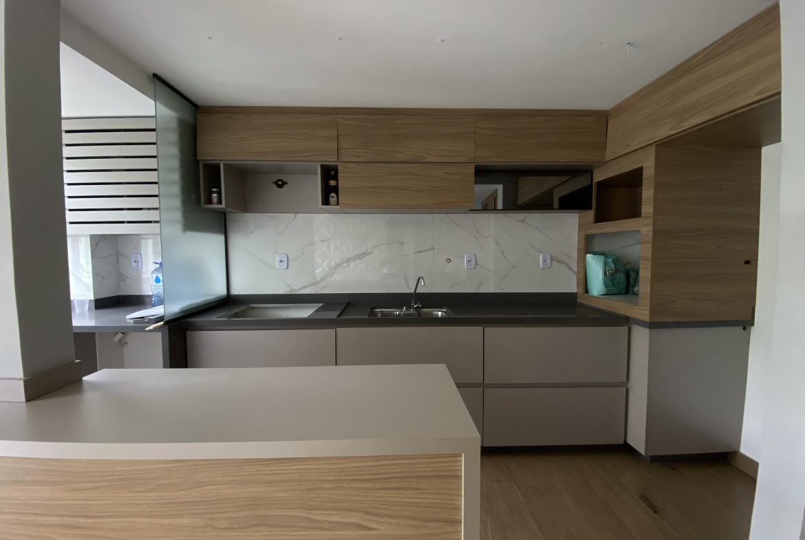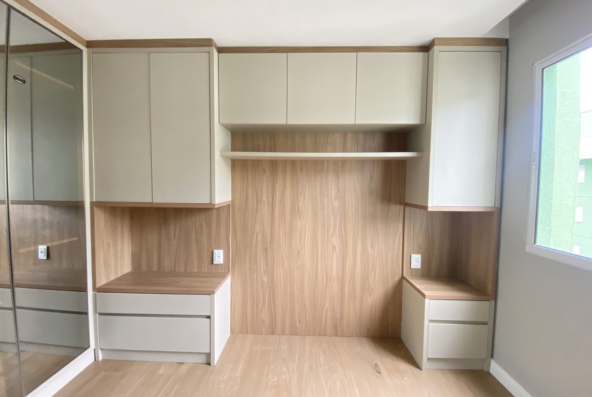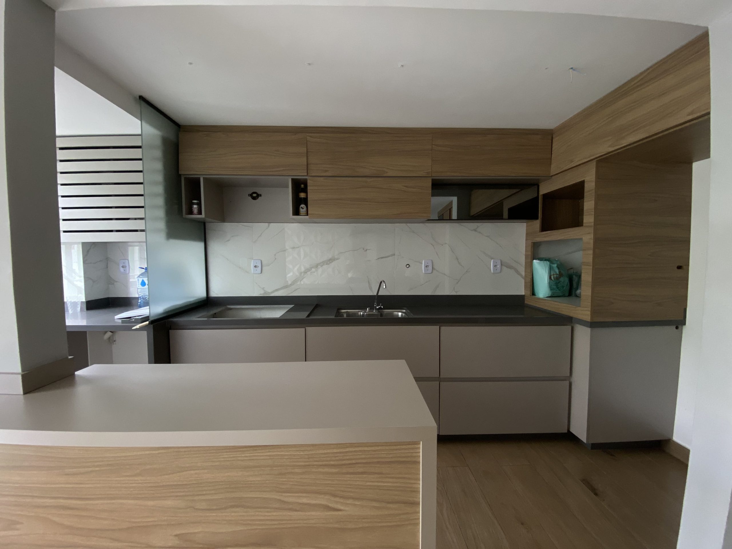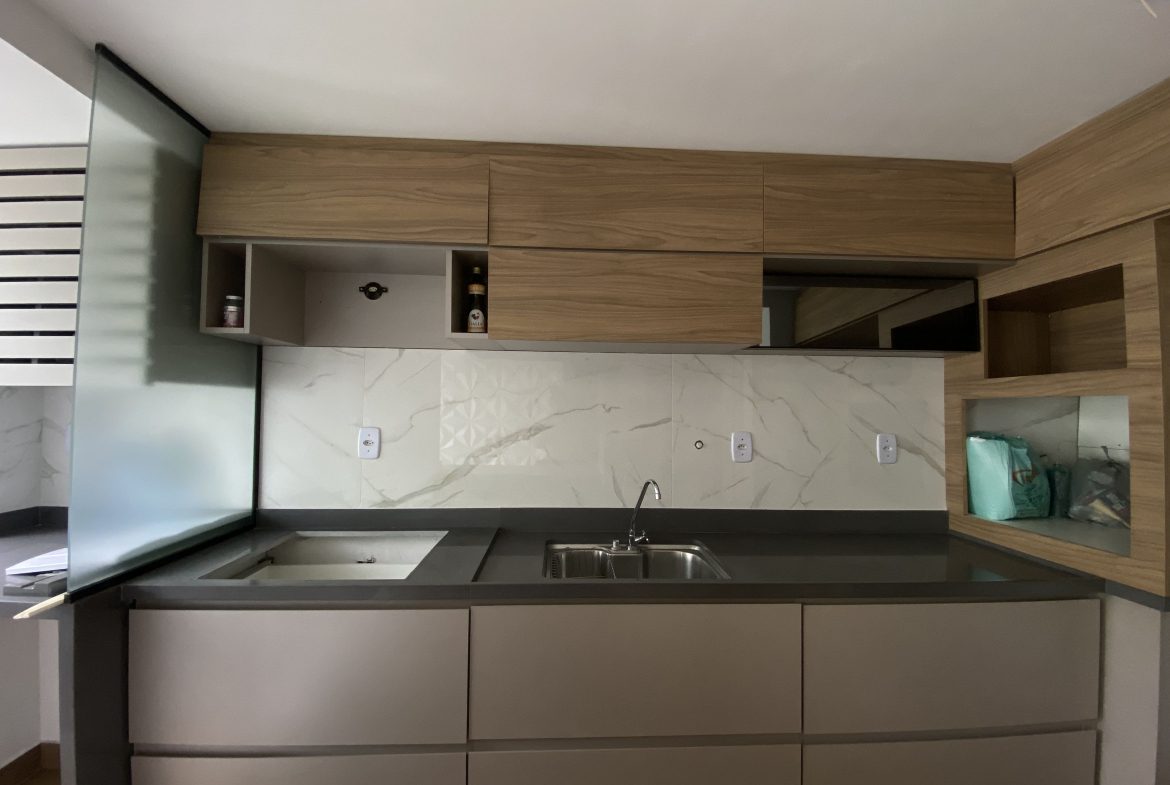 O condomínio oferece salão de festas, playground, horta, mercado self-service e vaga de garagem. O apartamento é semi-mobiliado, com planejamento de marcenaria e iluminação.