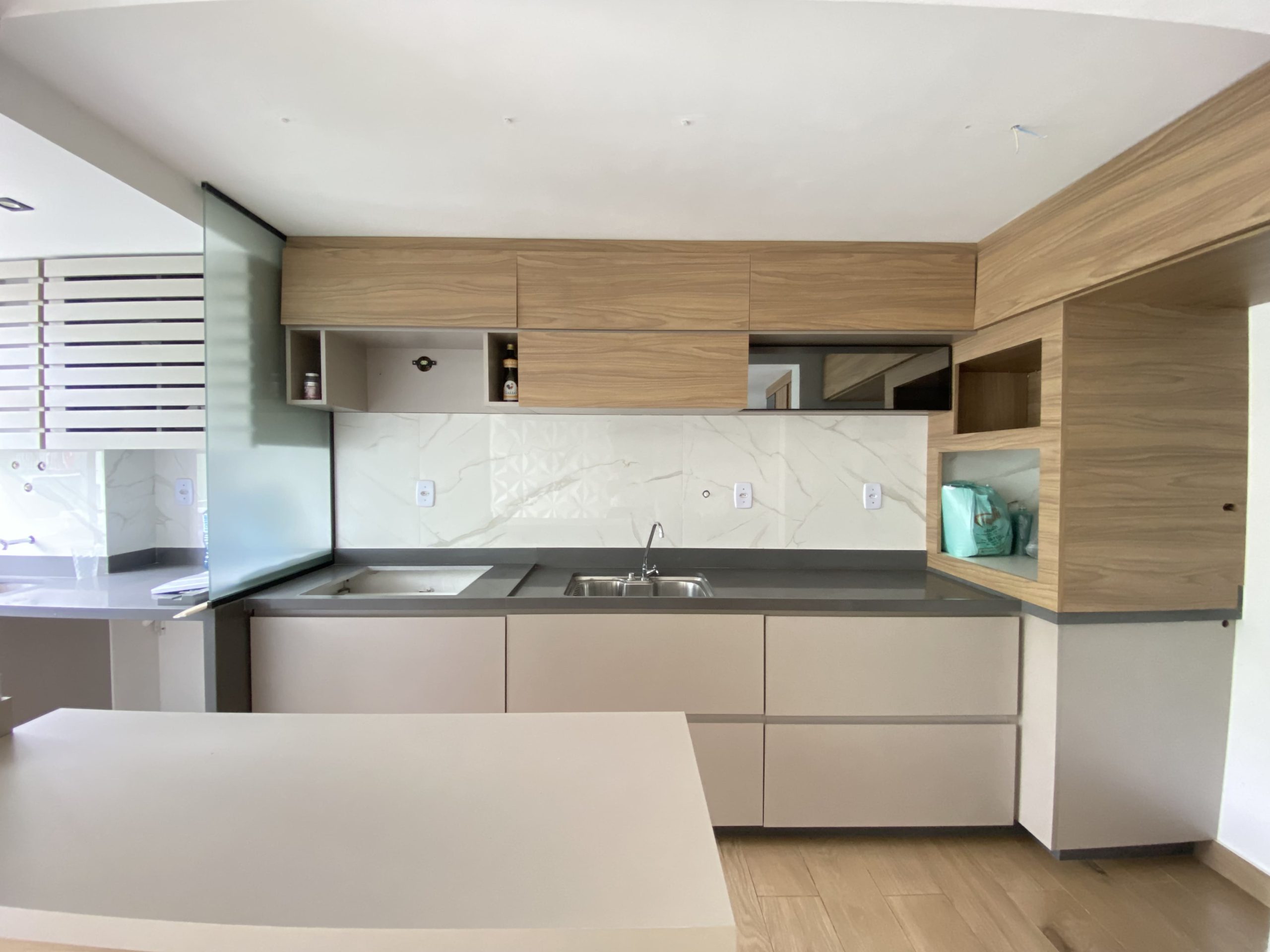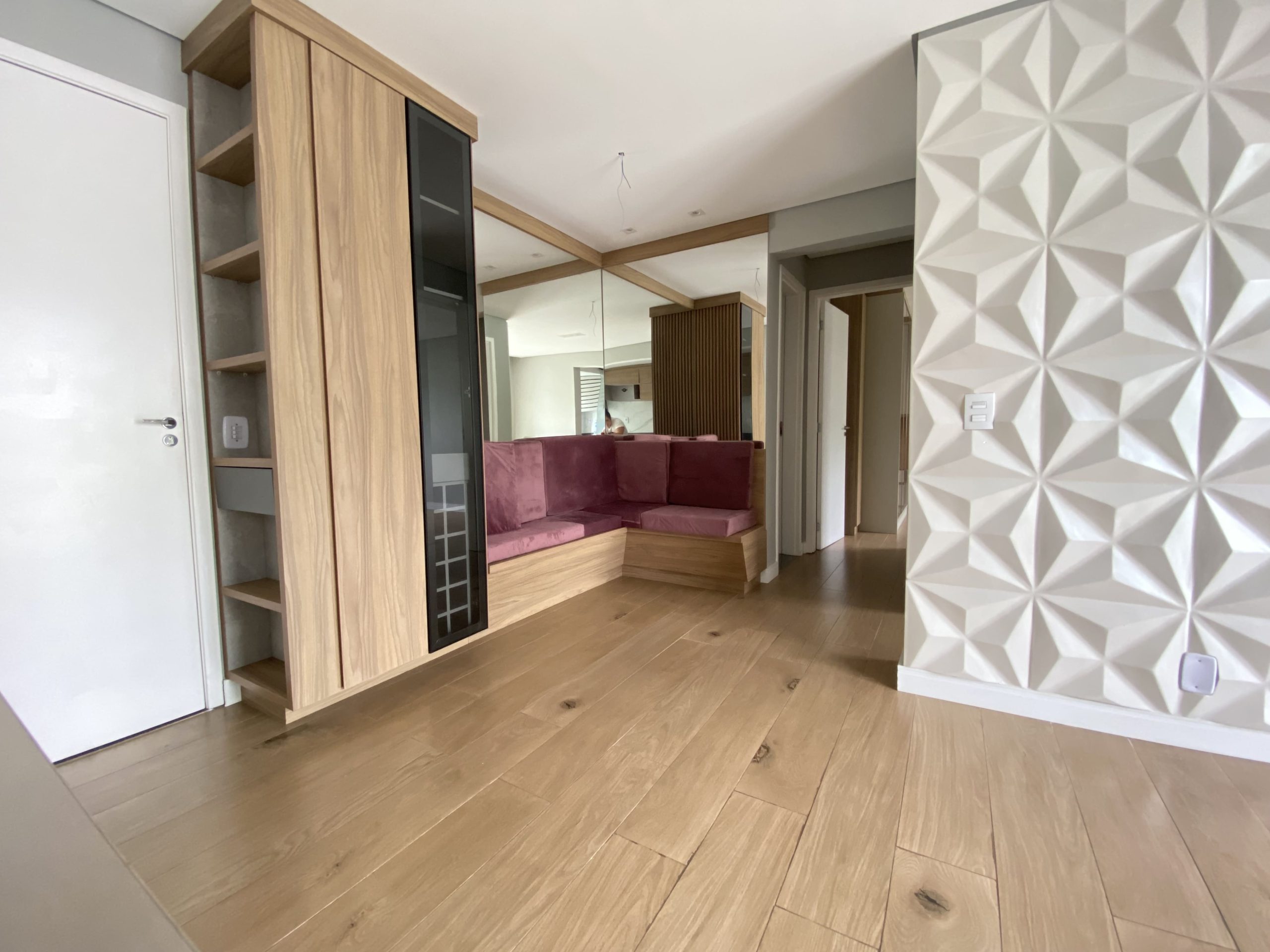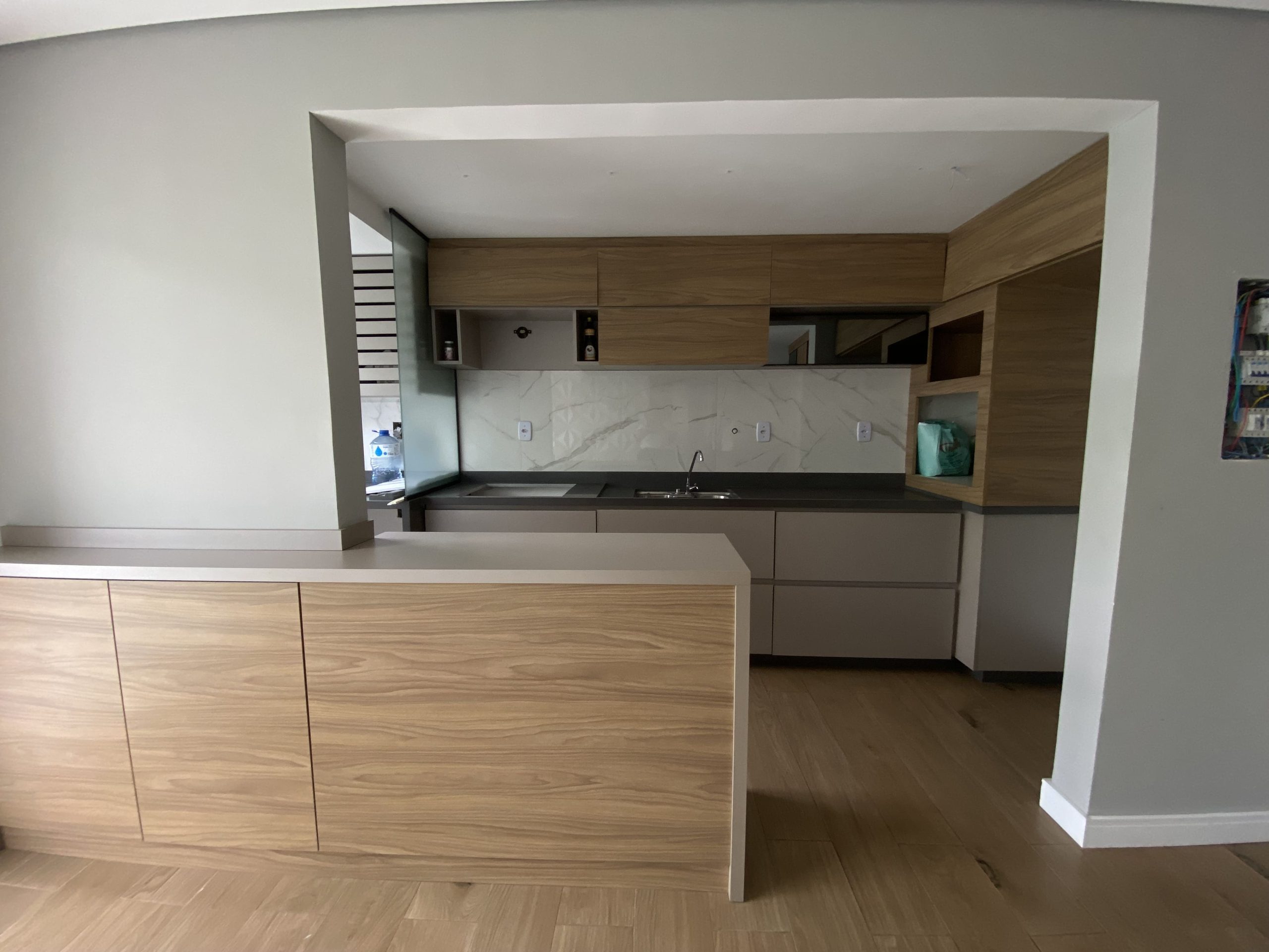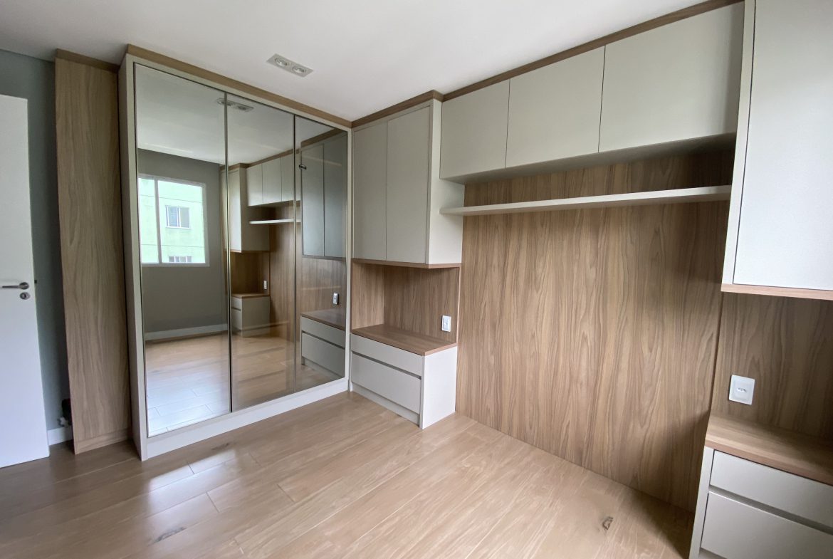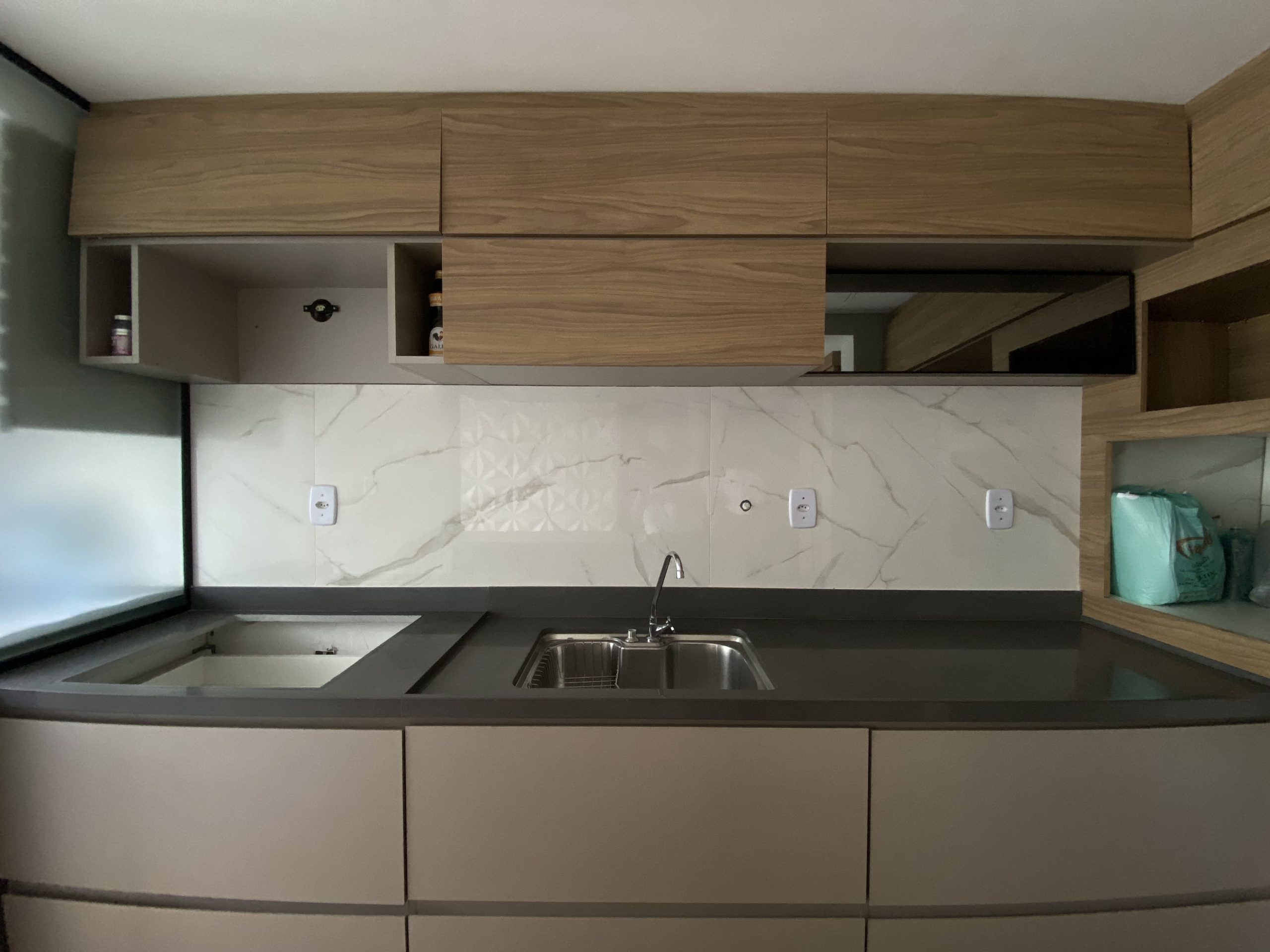 O condomínio oferece salão de festas, playground, horta, mercado self-service e vaga de garagem. O apartamento é semi-mobiliado, com planejamento de marcenaria e iluminação.