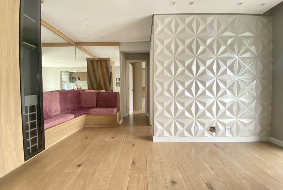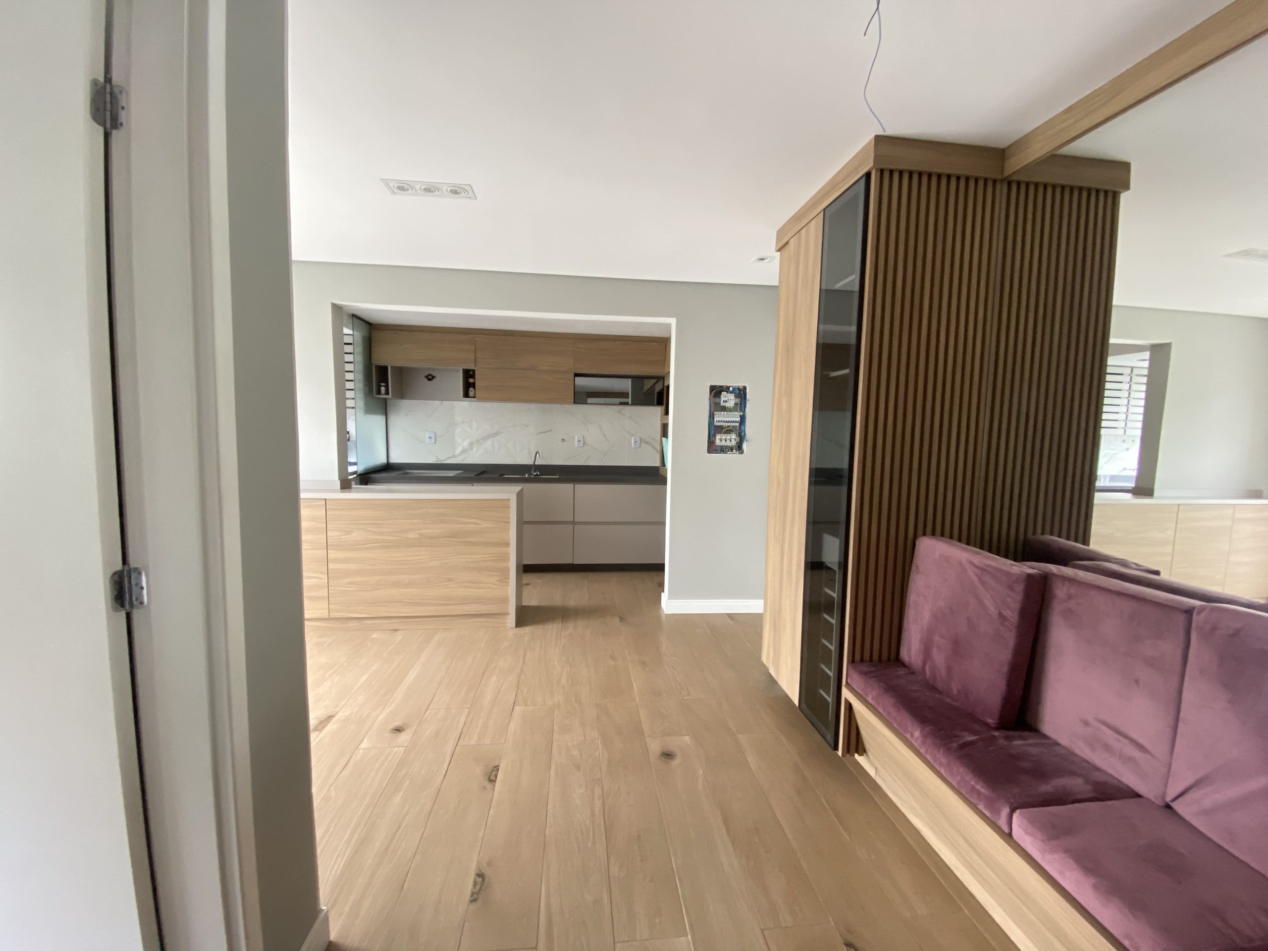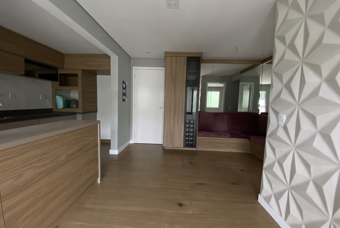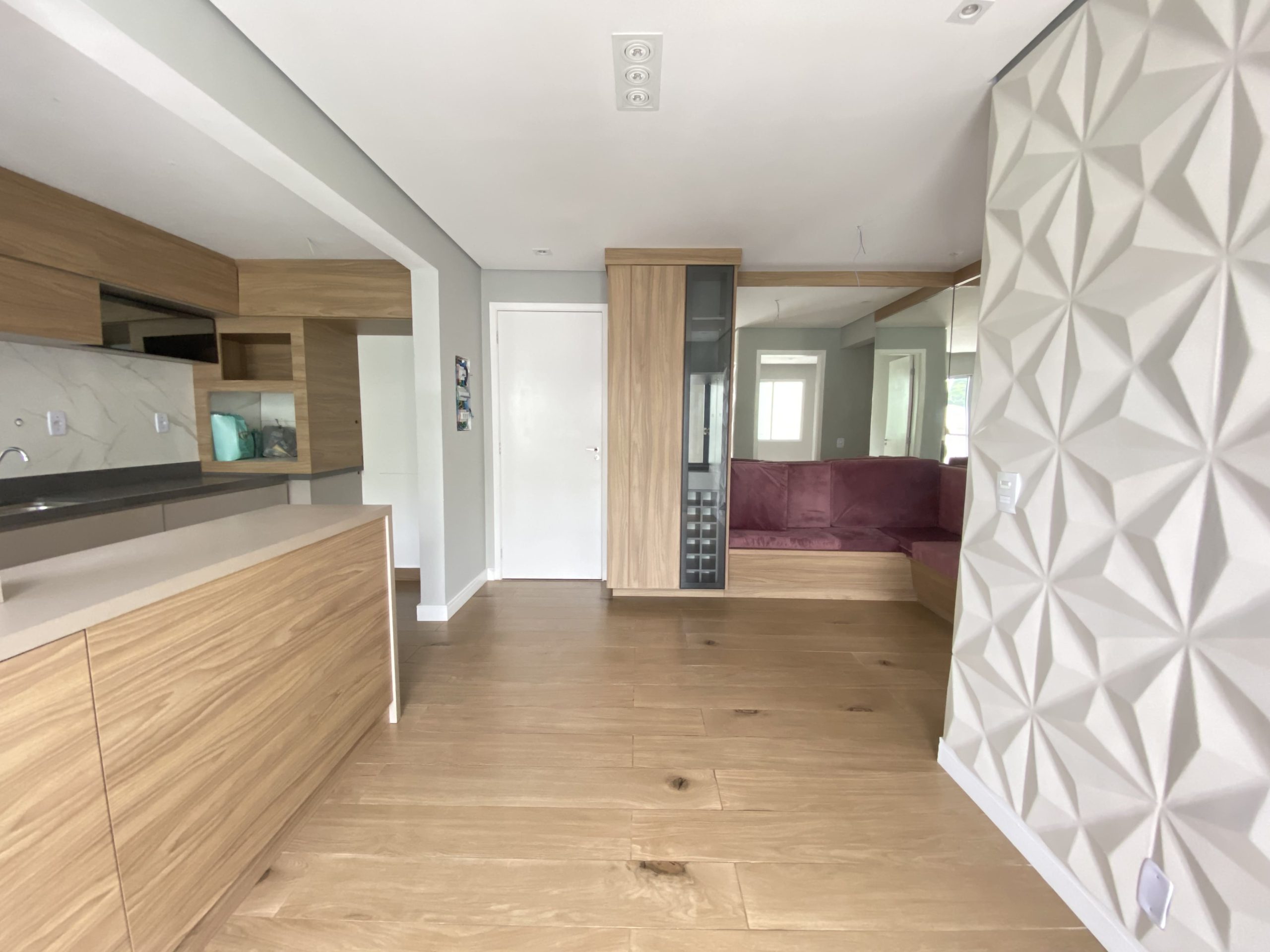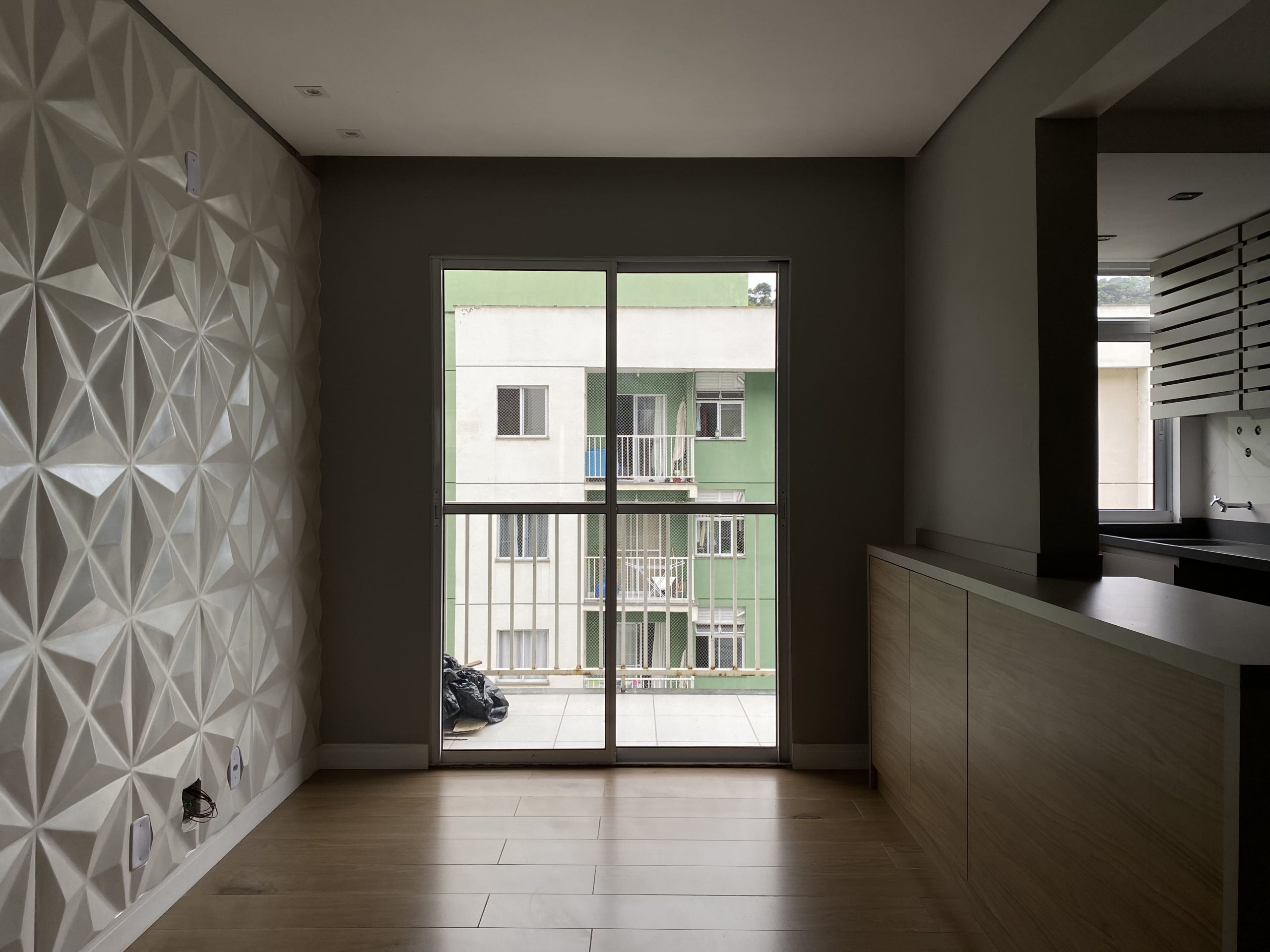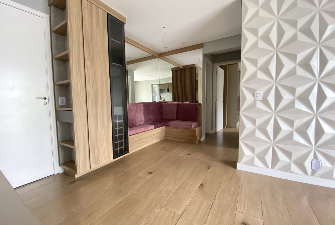 O condomínio oferece salão de festas, playground, horta, mercado self-service e vaga de garagem. O apartamento é semi-mobiliado, com planejamento de marcenaria e iluminação.