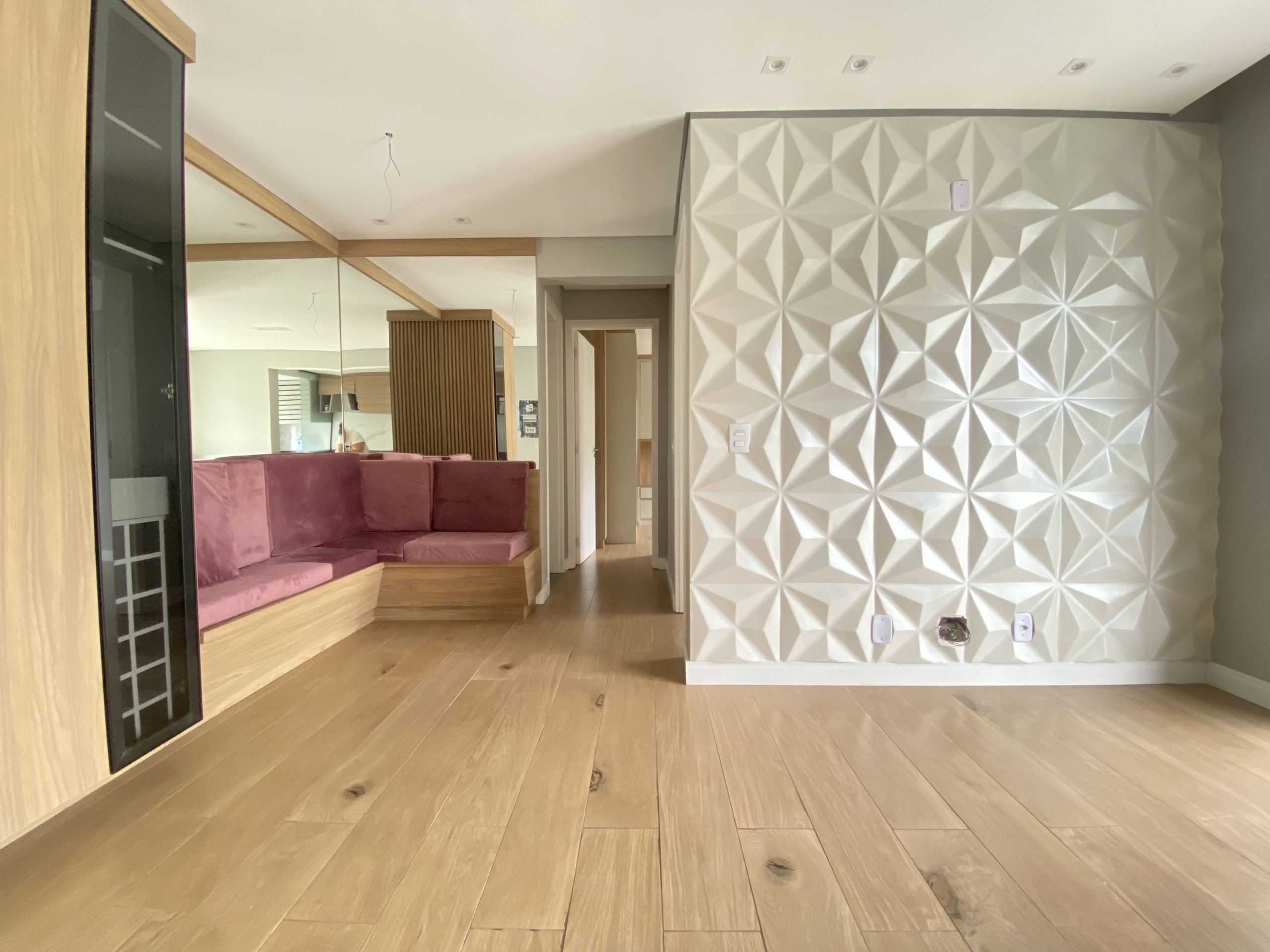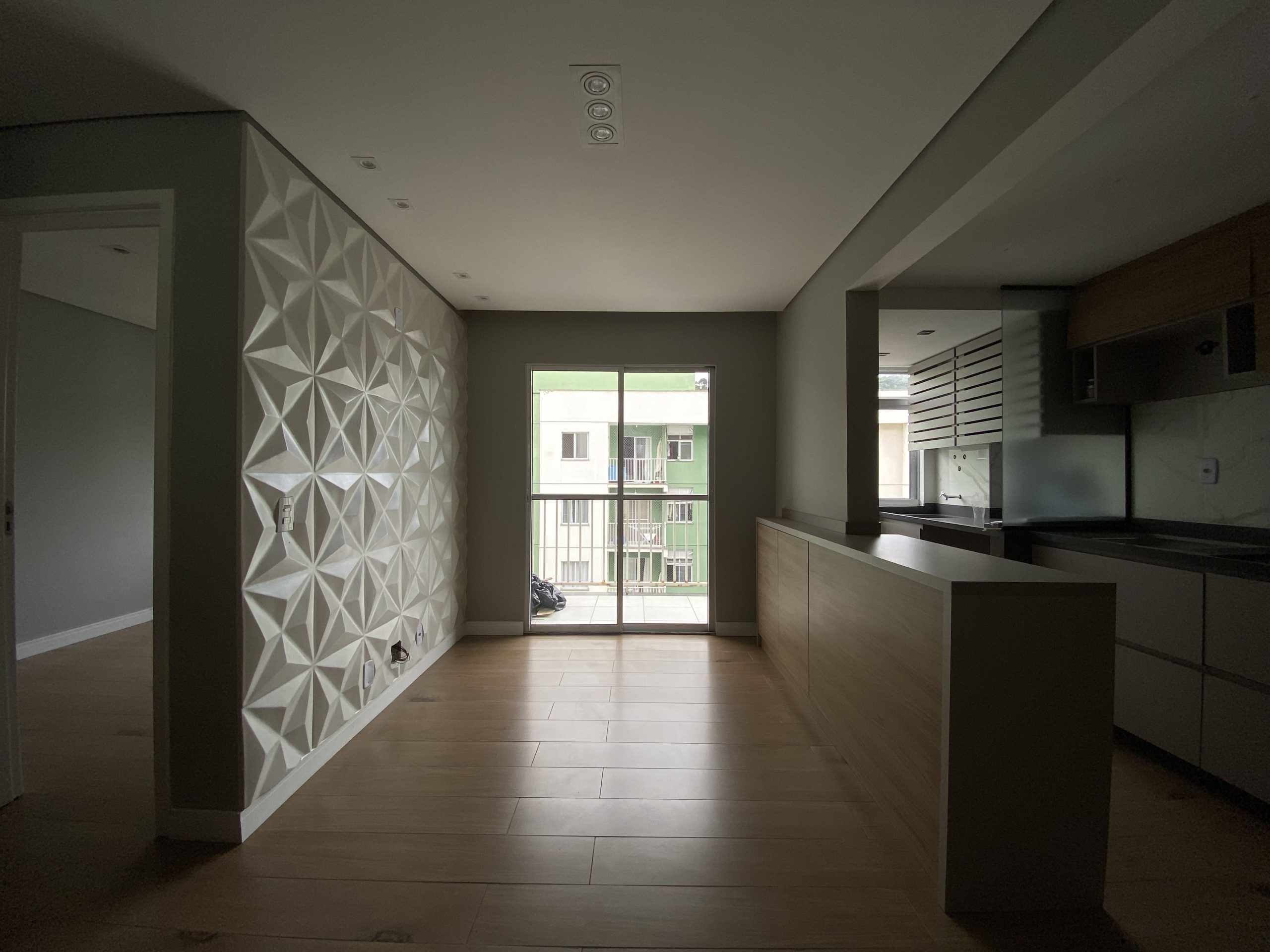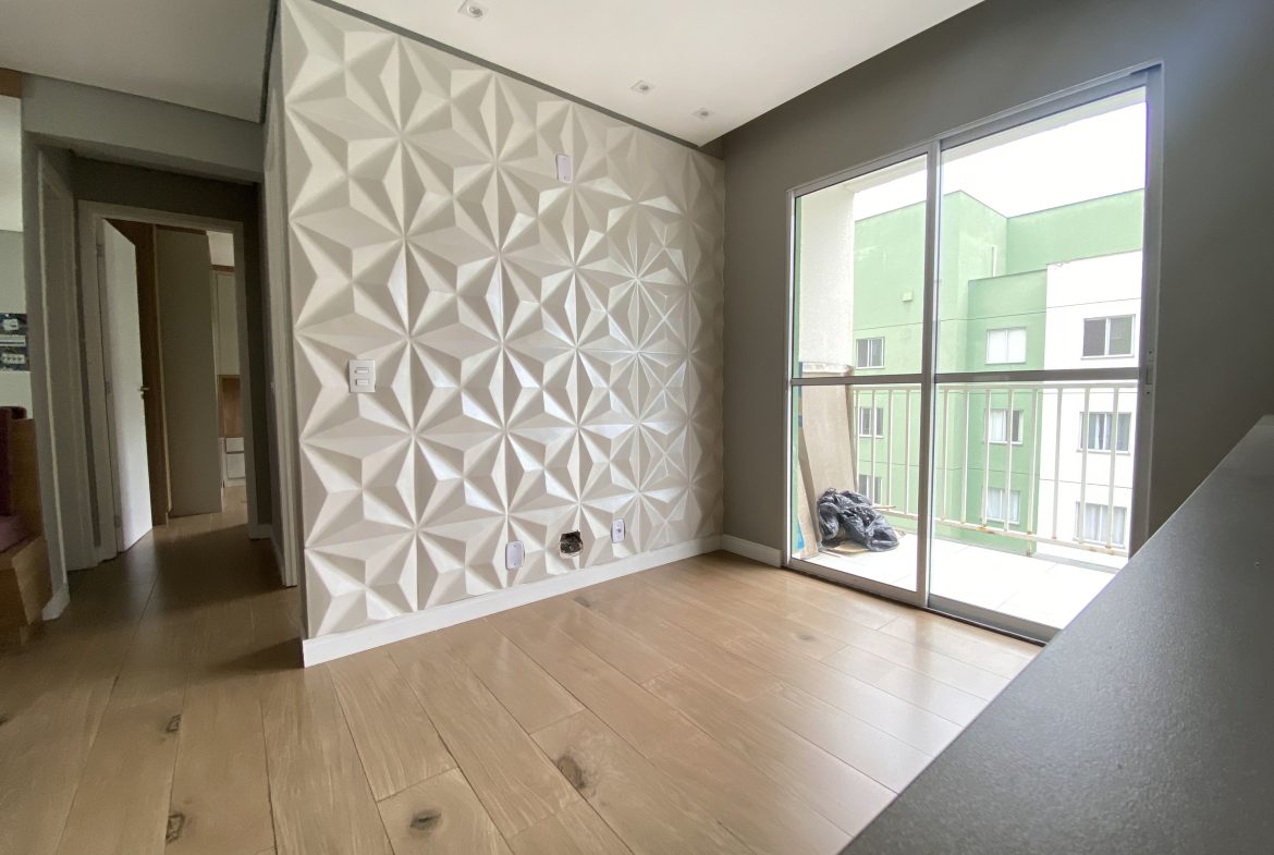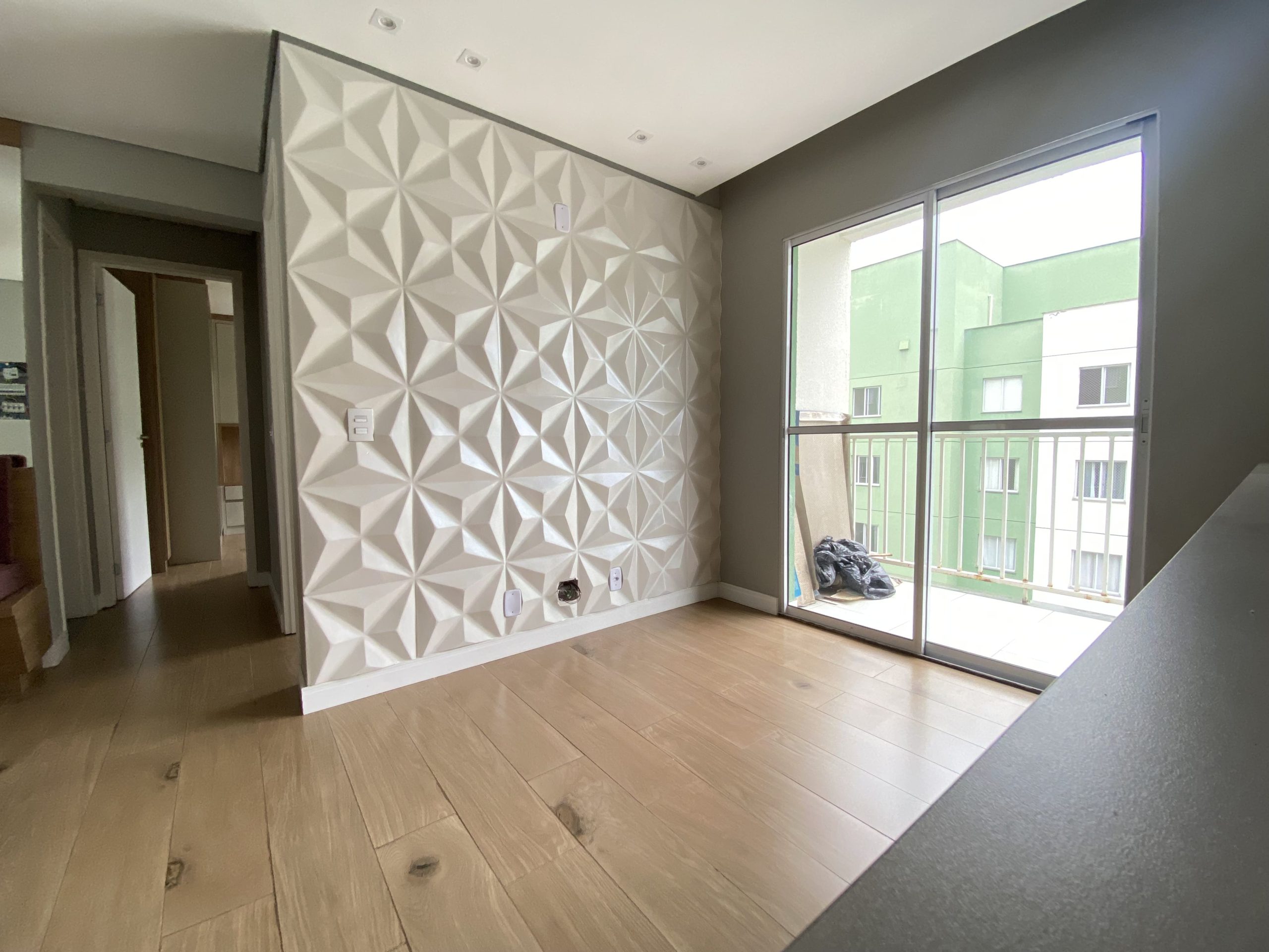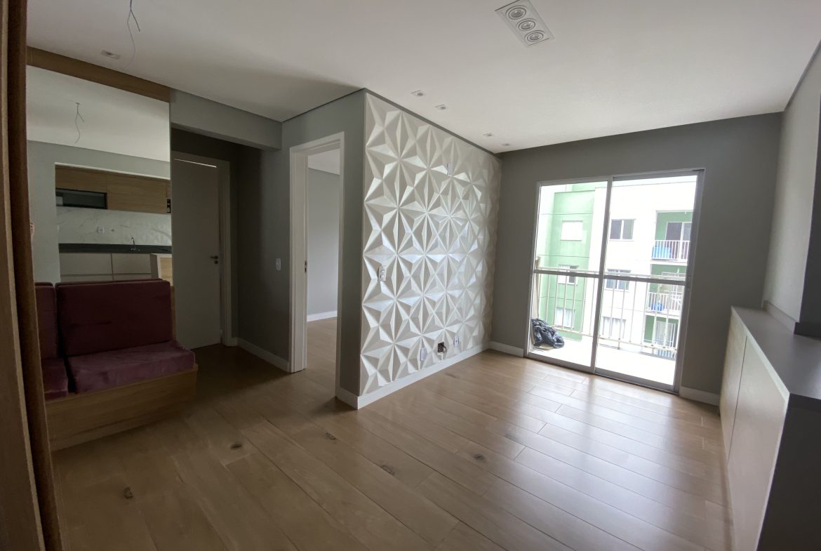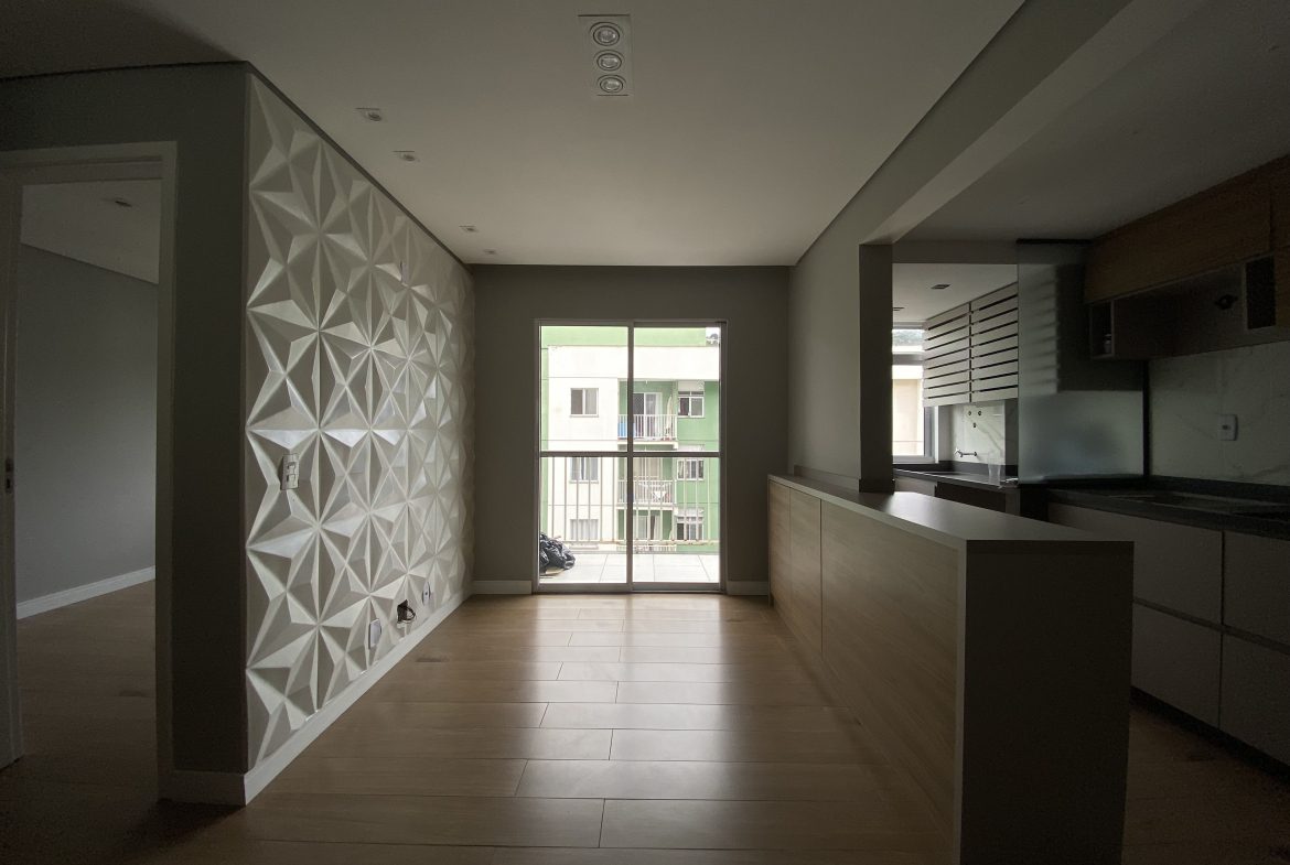 O condomínio oferece salão de festas, playground, horta, mercado self-service e vaga de garagem. O apartamento é semi-mobiliado, com planejamento de marcenaria e iluminação.