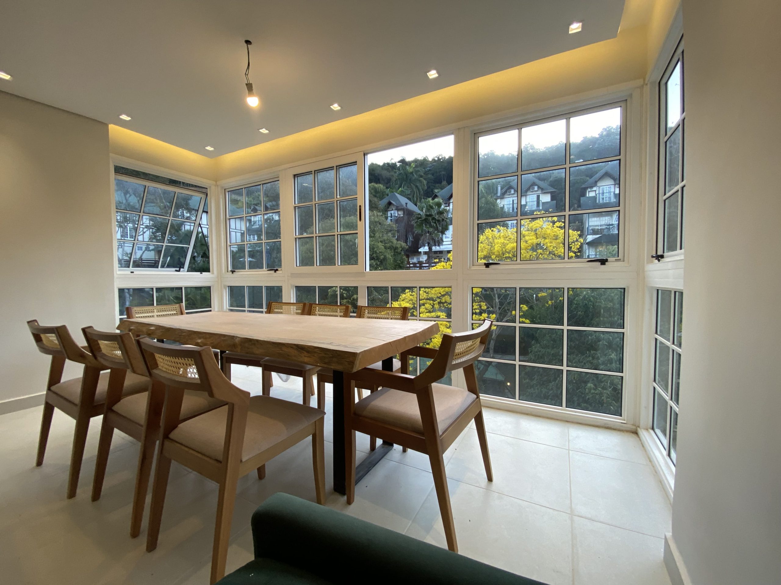 Destaque para as grandes janelas, que garantem luminosidade natural e ar puro ao ambiente.