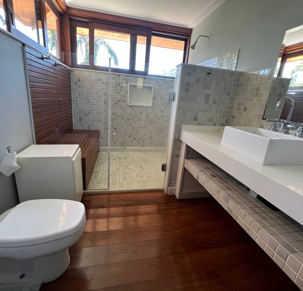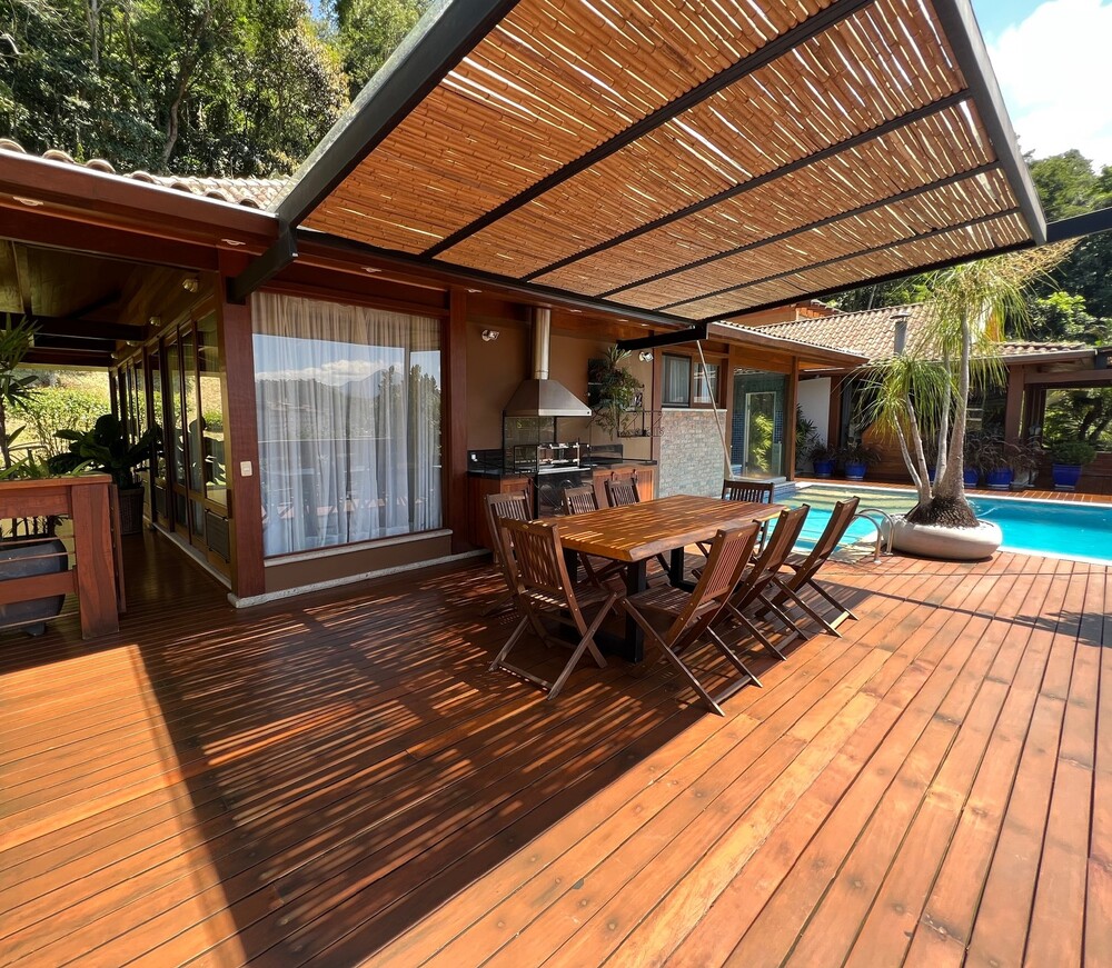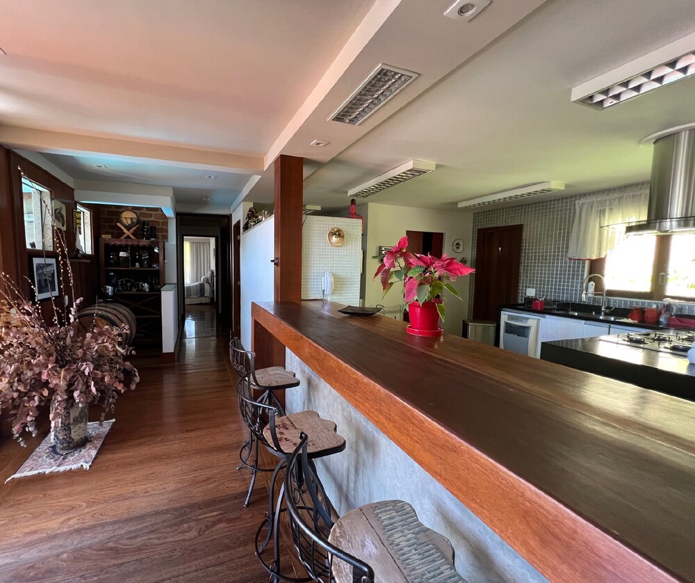 Toda a casa possui estrutura em madeira, proporcionando um ambiente acolhedor e sofisticado, ideal para quem busca qualidade de vida em um dos melhores condomínios de Itaipava.