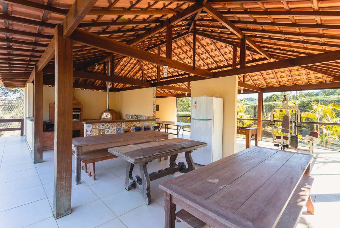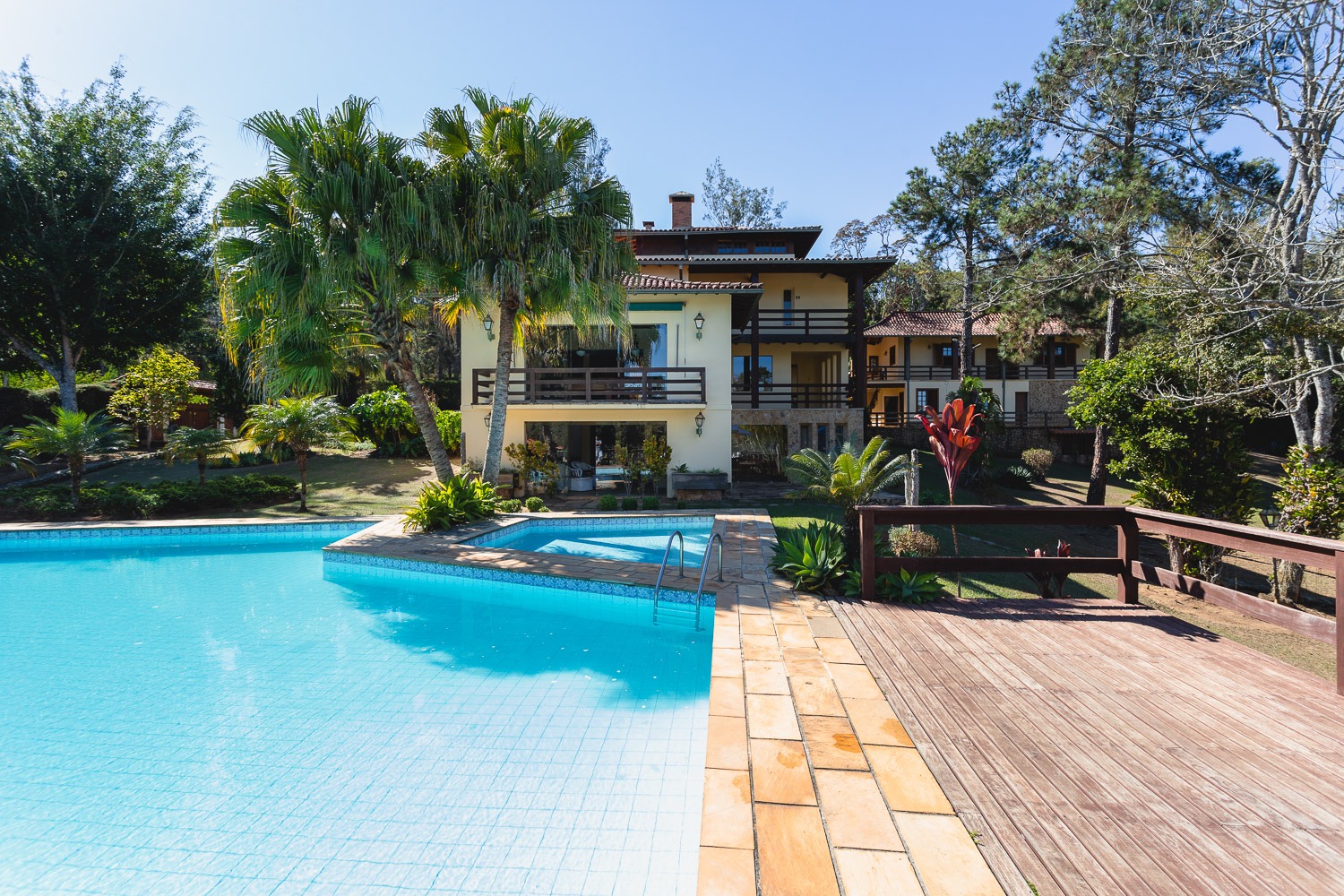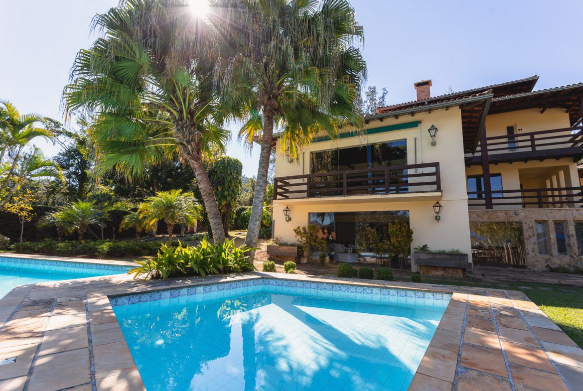 A casa principal possui 4 quartos planejados e uma suíte espaçosa com closet, todos alocados no 2º andar. Na cozinha, você encontrará armários planejados no melhor estilo americano. Possui uma sala ampla para receber amigos e um salão de jogos, um belo jardim com pomar, piscina com churrasqueira, quadra de futebol, uma linda capela, uma casa de hóspede e garagem para até 6 carros.