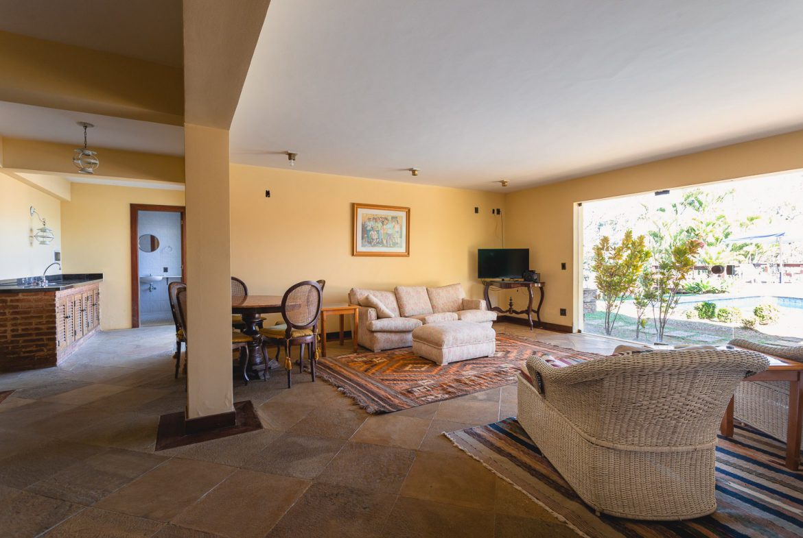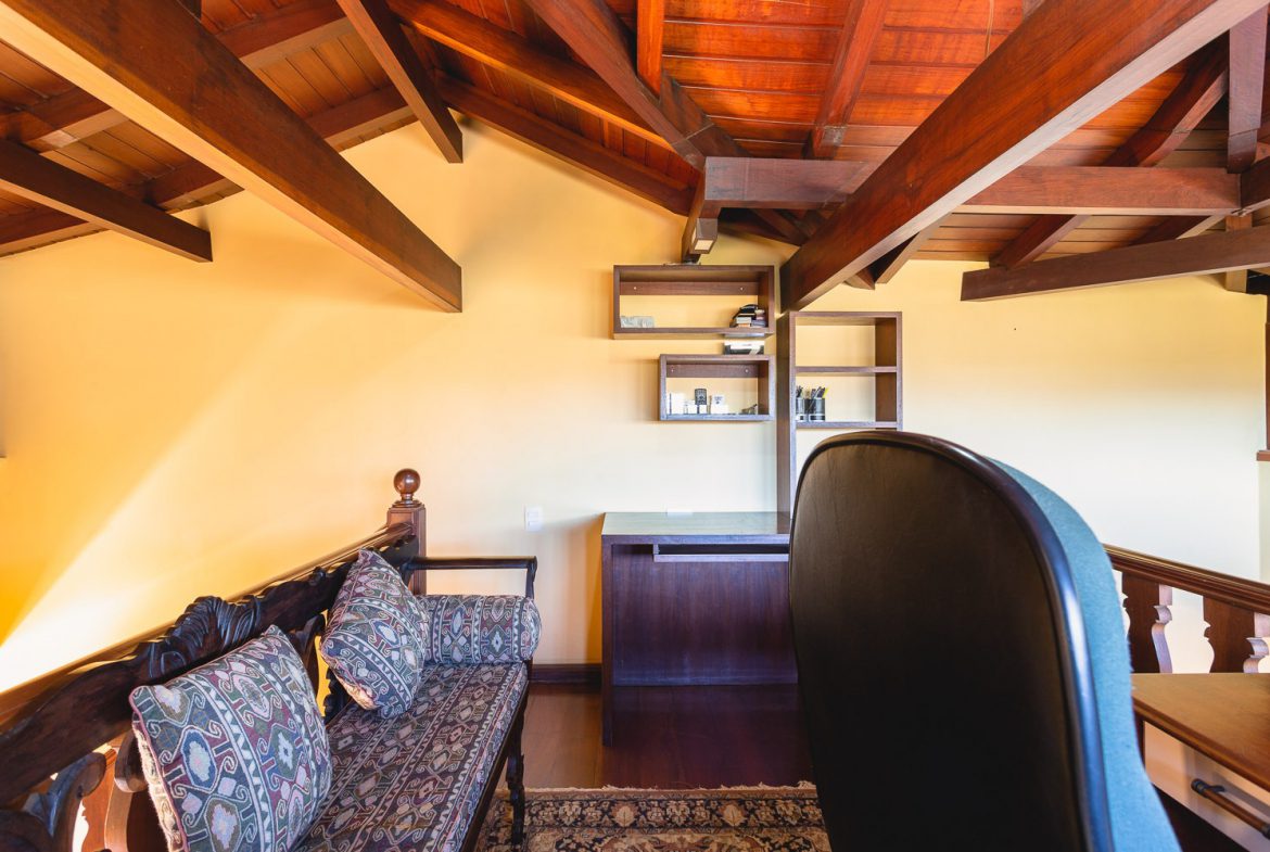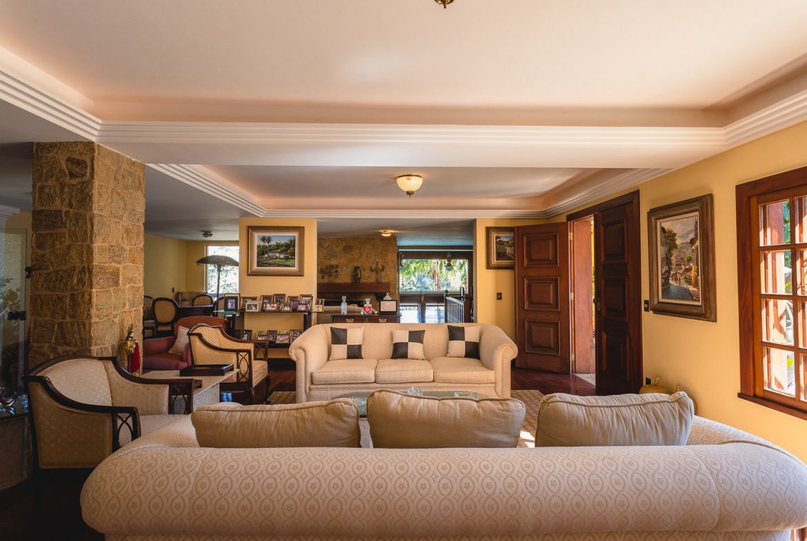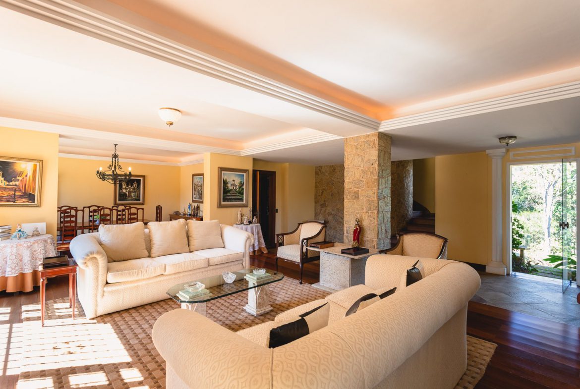 A casa principal possui 4 quartos planejados e uma suíte espaçosa com closet, todos alocados no 2º andar. Na cozinha, você encontrará armários planejados no melhor estilo americano. Possui uma sala ampla para receber amigos e um salão de jogos, um belo jardim com pomar, piscina com churrasqueira, quadra de futebol, uma linda capela, uma casa de hóspede e garagem para até 6 carros.