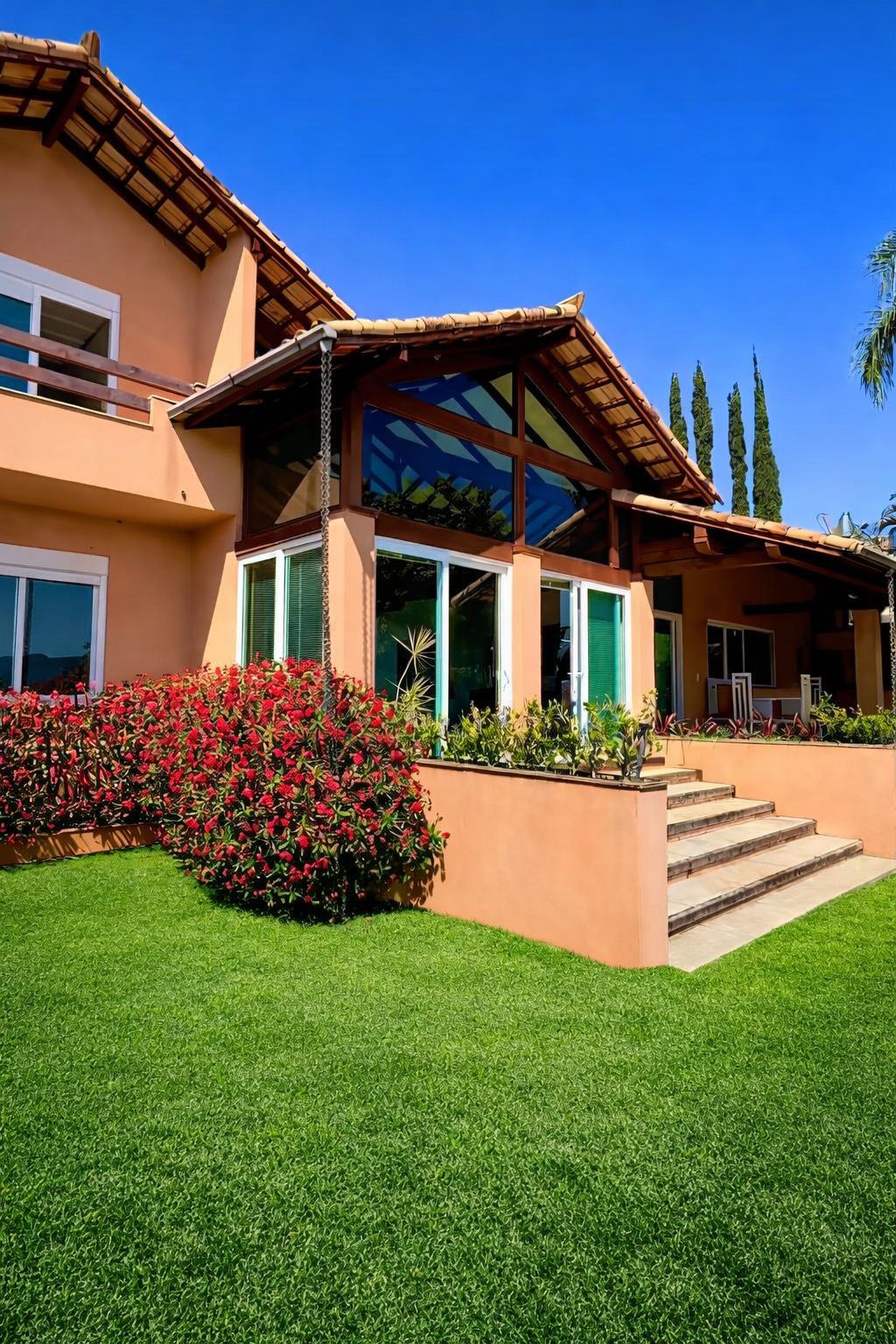 O terreno de 990 m² é totalmente plano e gramado, uma característica valiosa na região serrana. Você pode aproveitar dias ensolarados na piscina ou receber amigos no espaço gourmet privativo. Além disso, o jardim arborizado garante total privacidade para seus momentos de lazer. Certamente, a vista livre completa a experiência de morar em um refúgio exclusivo.