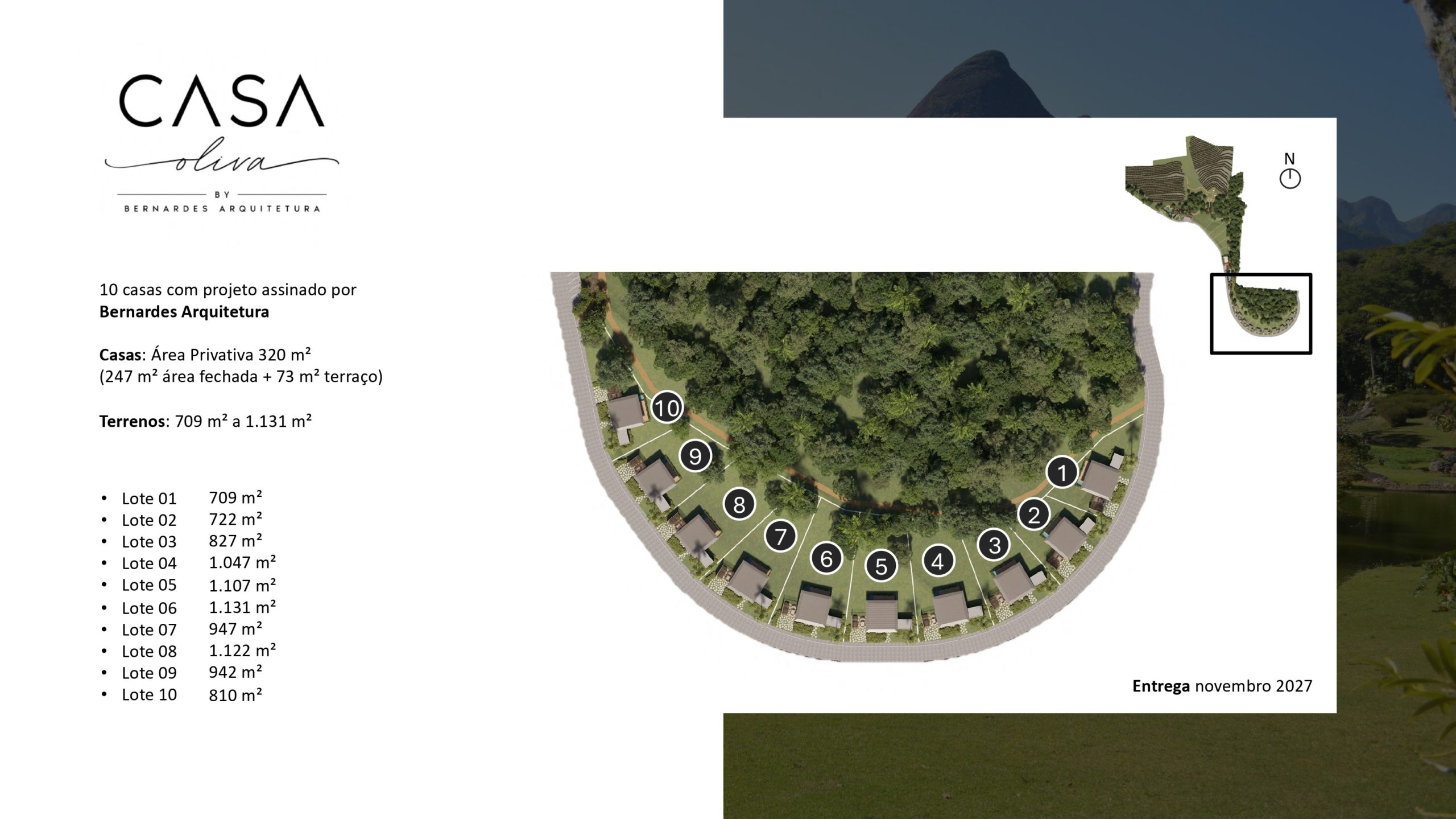 - Casas: 10 unidades com projeto exclusivo do Bernardes Arquitetura.