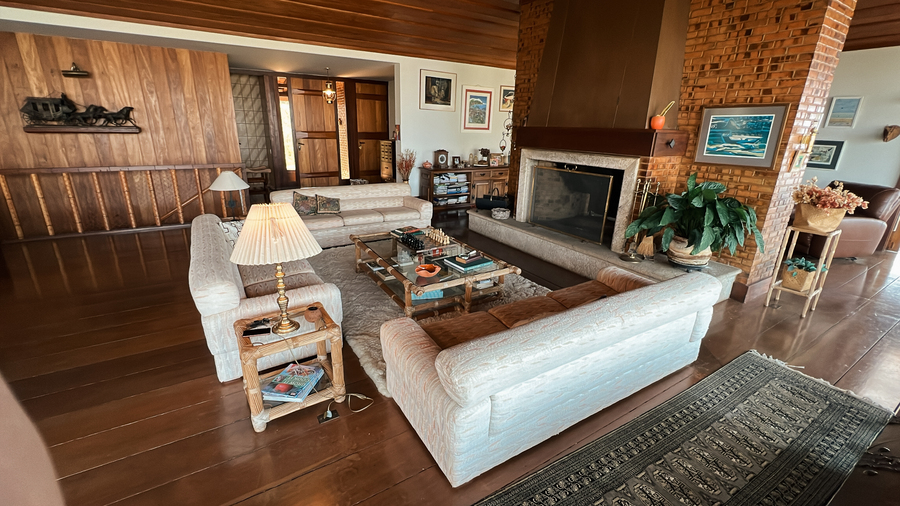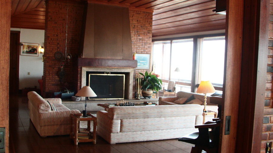 • A sala de estar, com sua lareira aconchegante, é perfeita para os dias mais frios.