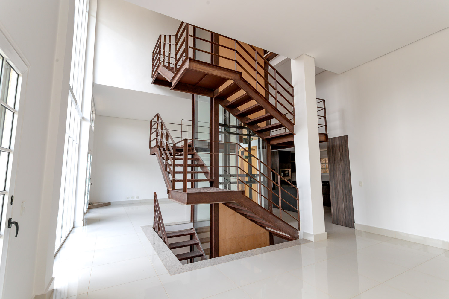 A garagem coberta possui espaço para quatro carros, e logo na entrada, um vestíbulo acolhedor recebe os moradores. Uma charmosa adega complementa este andar, perfeita para quem aprecia vinhos.
