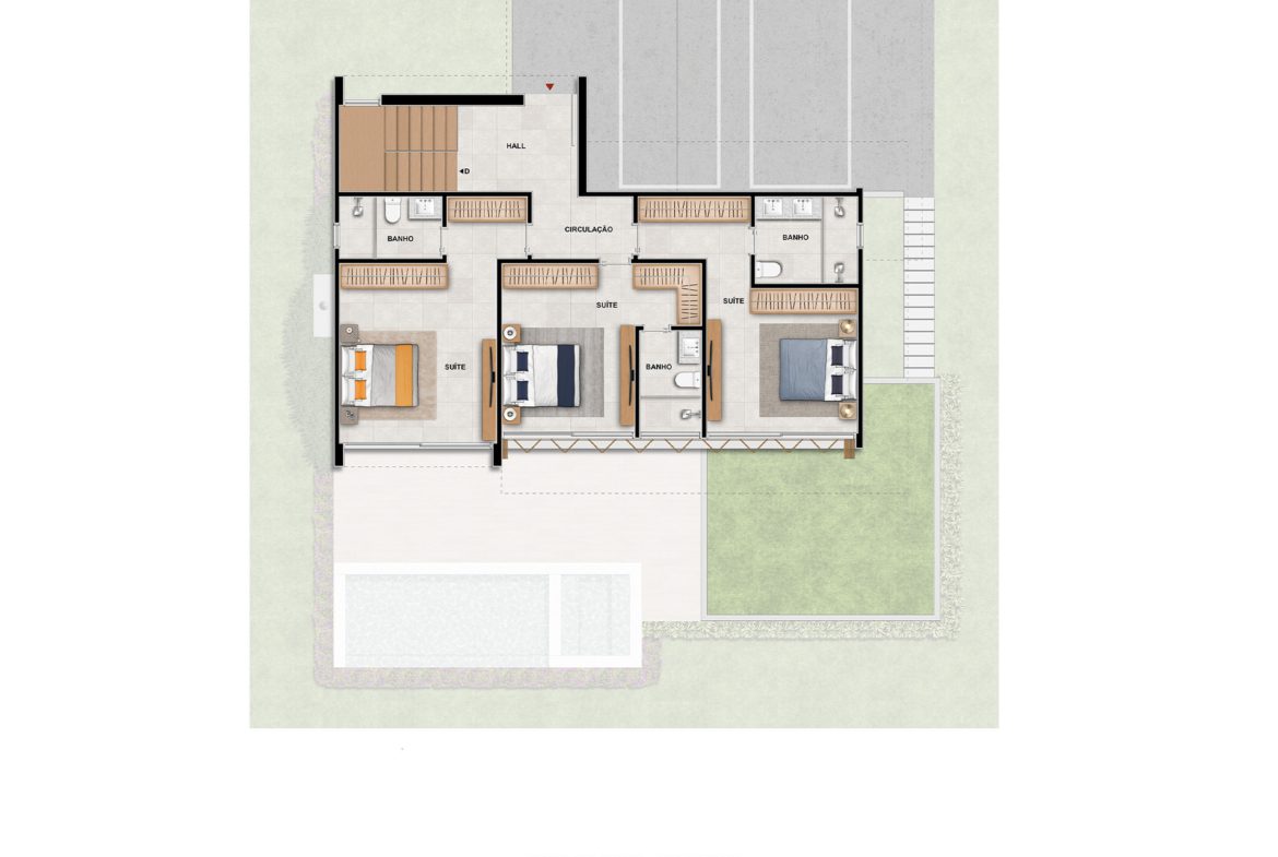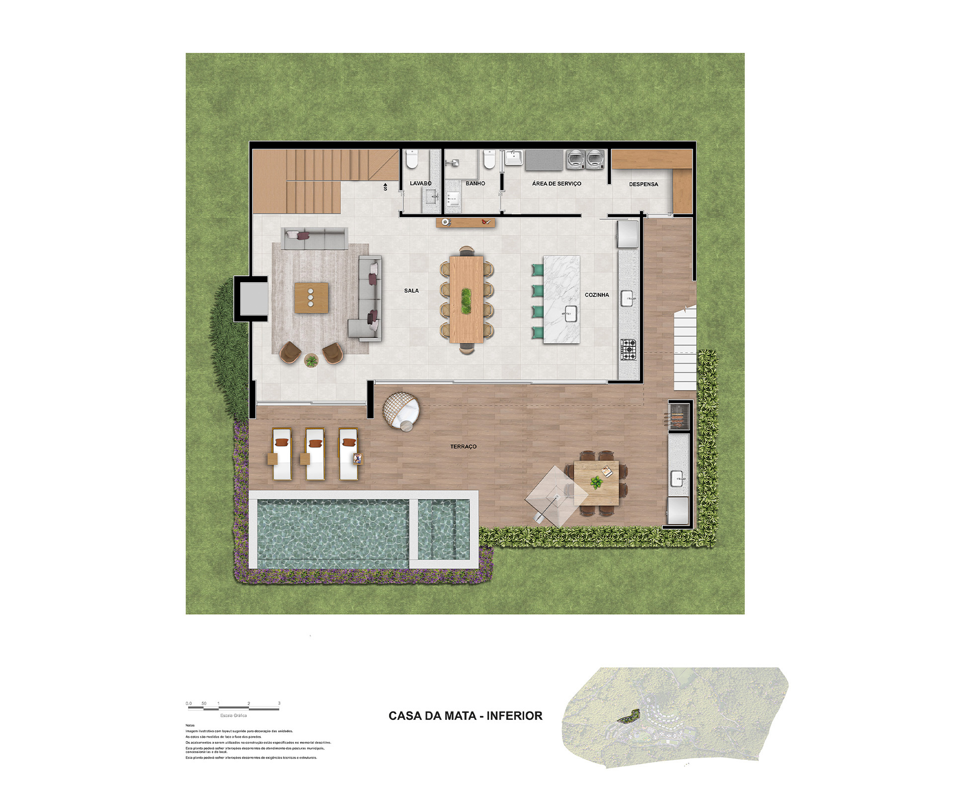 Para sua conveniência, a residência também inclui uma lavanderia e uma despensa. Esses espaços foram pensados para otimizar o seu dia a dia e manter a organização. A área construída de 301,43 m² e a área externa de 48,69 m² com piscina e deck garantem que cada canto da casa foi planejado com o máximo de conforto em mente. Por fim, esta casa não é apenas um imóvel; ela é um convite para uma vida plena e de bem-estar.