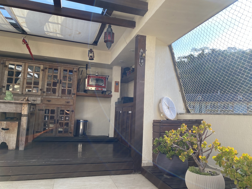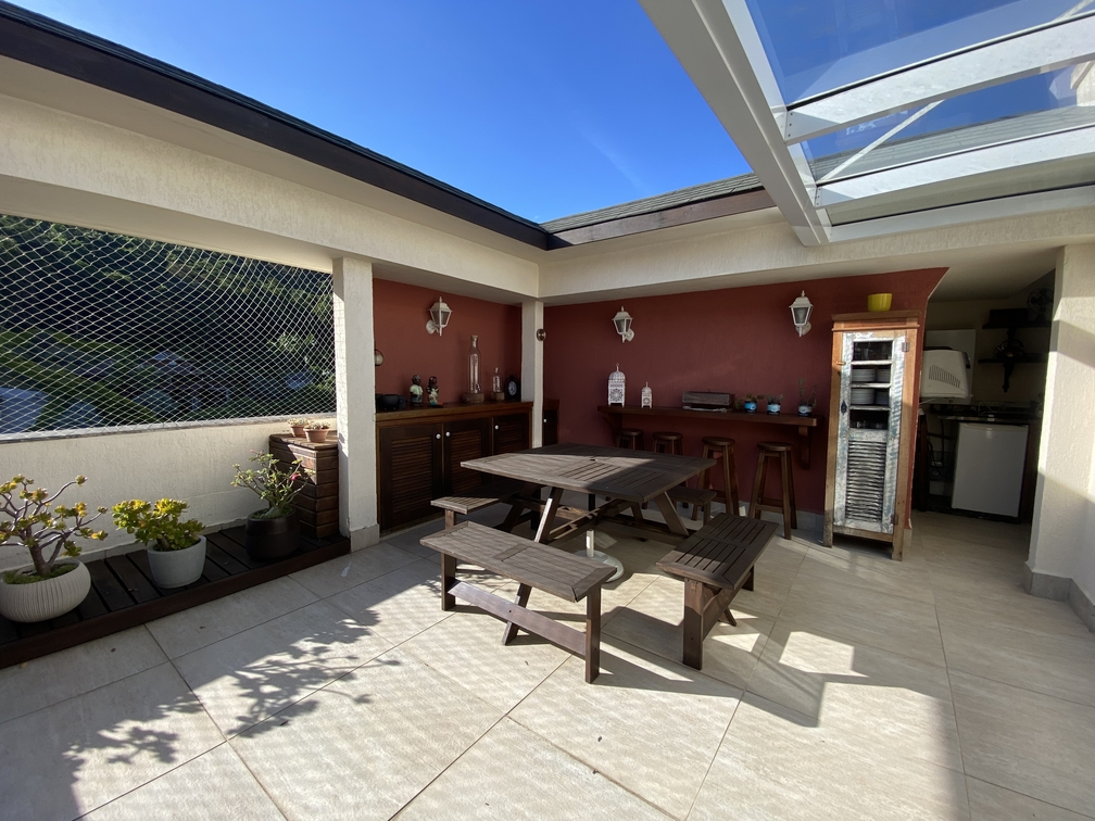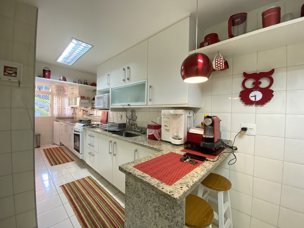 Vagas e áreas externas: Vaga de garagem coberta e, no segundo pavimento, sala de TV e área gourmet com churrasqueira.