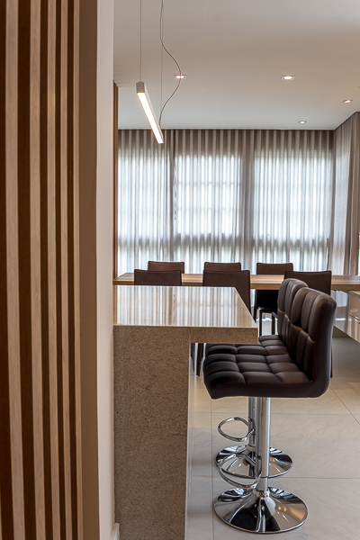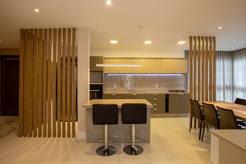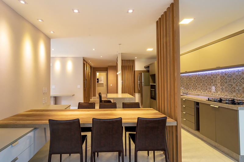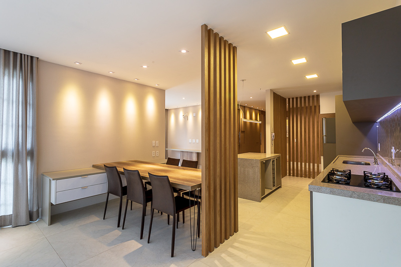 Possui design realizado pela proprietária do imóvel, com total integração a todos os ambientes. A sala principal tem acesso a dois ambientes alinhados à decoração do ambiente. Possui 4 suítes, todos os armários planejados, cozinha equipada e completa, área de serviço, lavabo e área de armazenamento.