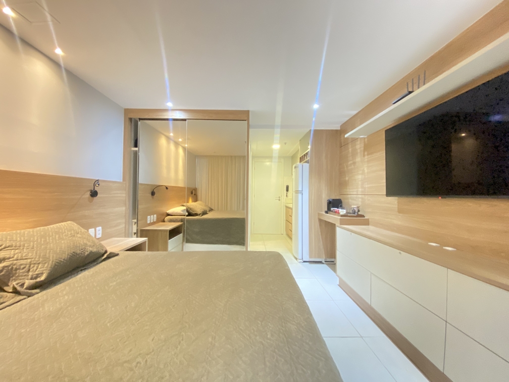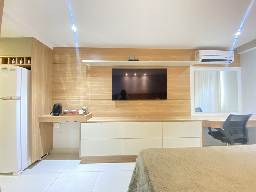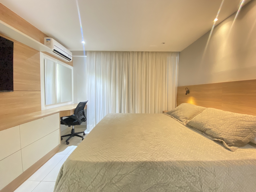 Este flat, planejado com requinte e bom gosto, é ideal para quem busca conforto e sofisticação. Localizado em um dos melhores e mais exclusivos condomínios da região, o imóvel oferece total segurança e comodidade. A infraestrutura do condomínio conta com três áreas de lazer completas, incluindo academias modernas, piscinas climatizadas e saunas relaxantes, que garantem momentos de bem-estar para os moradores.