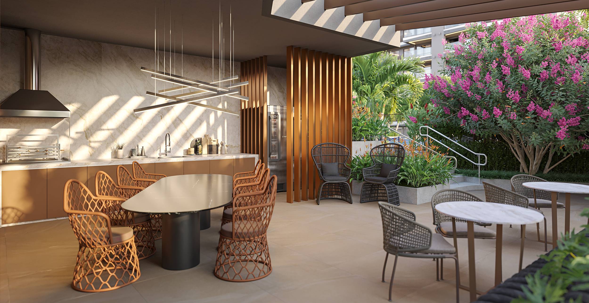 Os gardens e apartamentos são entregues com diversas facilidades para seu conforto. Todos, por exemplo, possuem banheiros suíte, social e WC de serviço com ducha higiênica. Além disso, água quente está disponível na pia da cozinha e nos lavatórios dos banheiros. A infraestrutura inclui pontos para máquina de lavar louça, água para geladeira e banheiros ventilados naturalmente em algumas unidades*. Também há infraestrutura para ar-condicionado tipo split ou multisplit nas salas, suítes e quartos. Em adição, terraços descobertos têm previsão de kit piscina com chuveiro e kit de bancada com churrasqueira elétrica, disponíveis mediante custo adicional do programa Flex On.
