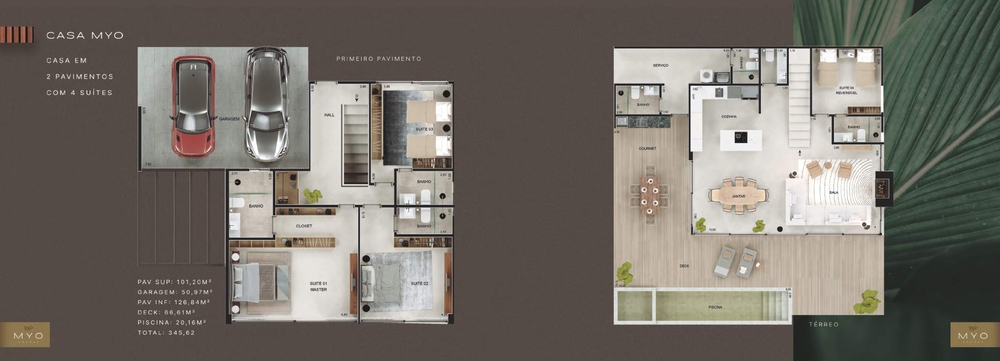 As residências do MYO Araras são verdadeiras obras de arte, projetadas para se integrarem perfeitamente à paisagem. A arquitetura valoriza a iluminação natural e as vistas deslumbrantes, criando ambientes que são, ao mesmo tempo, acolhedores e sofisticados.