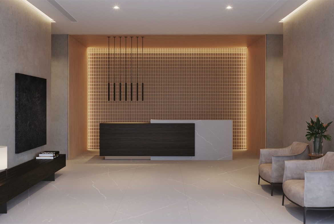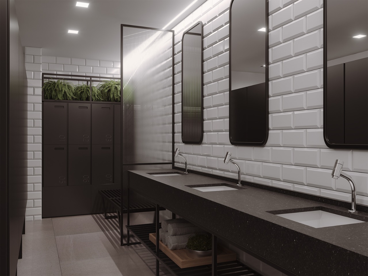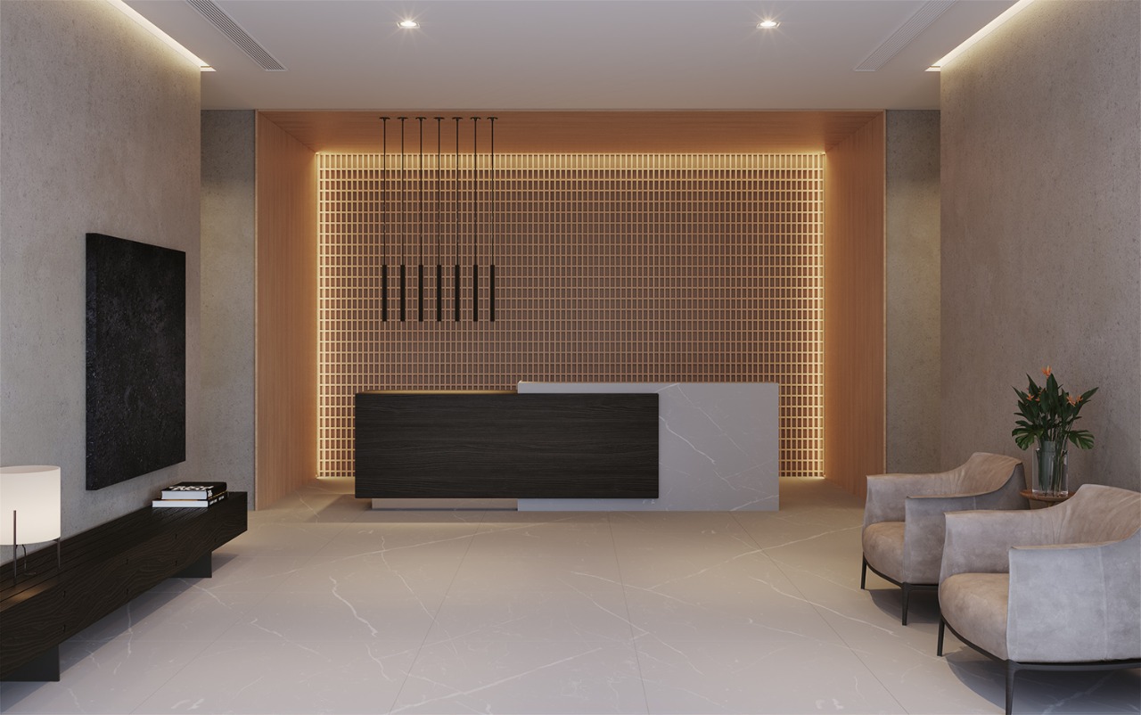 O projeto prioriza a acessibilidade em todas as áreas comuns, oferecendo rampas ou plataformas PCD quando necessário. Ademais, os elevadores e escadas atendem às exigências de acessibilidade, e os interruptores e comandos elétricos estão posicionados em alturas acessíveis para todos.