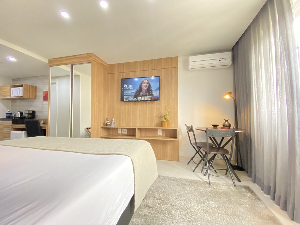 Este lindo studio de 27m² é perfeito para quem busca conforto, praticidade e uma vista espetacular. Localizado em andar alto, oferece um visual deslumbrante para as montanhas, trazendo tranquilidade e bem-estar.
