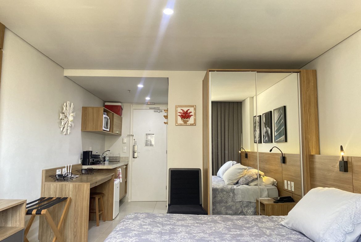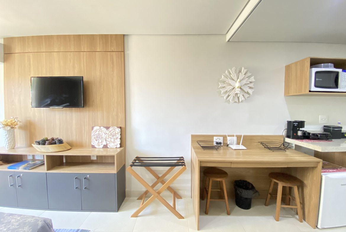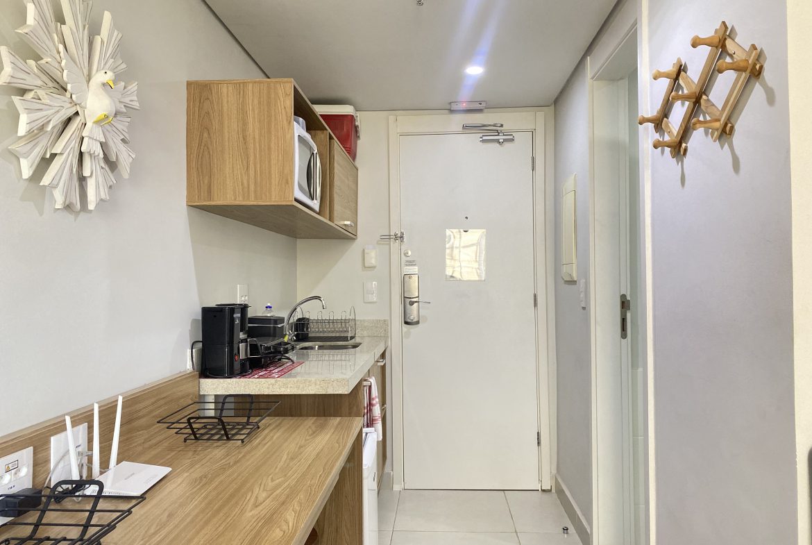 Características: Iluminado, com sol da tarde e cozinha compacta com armários planejados.