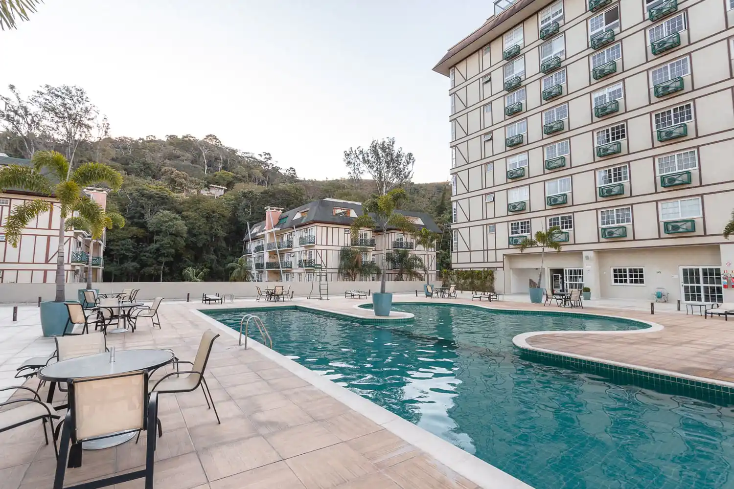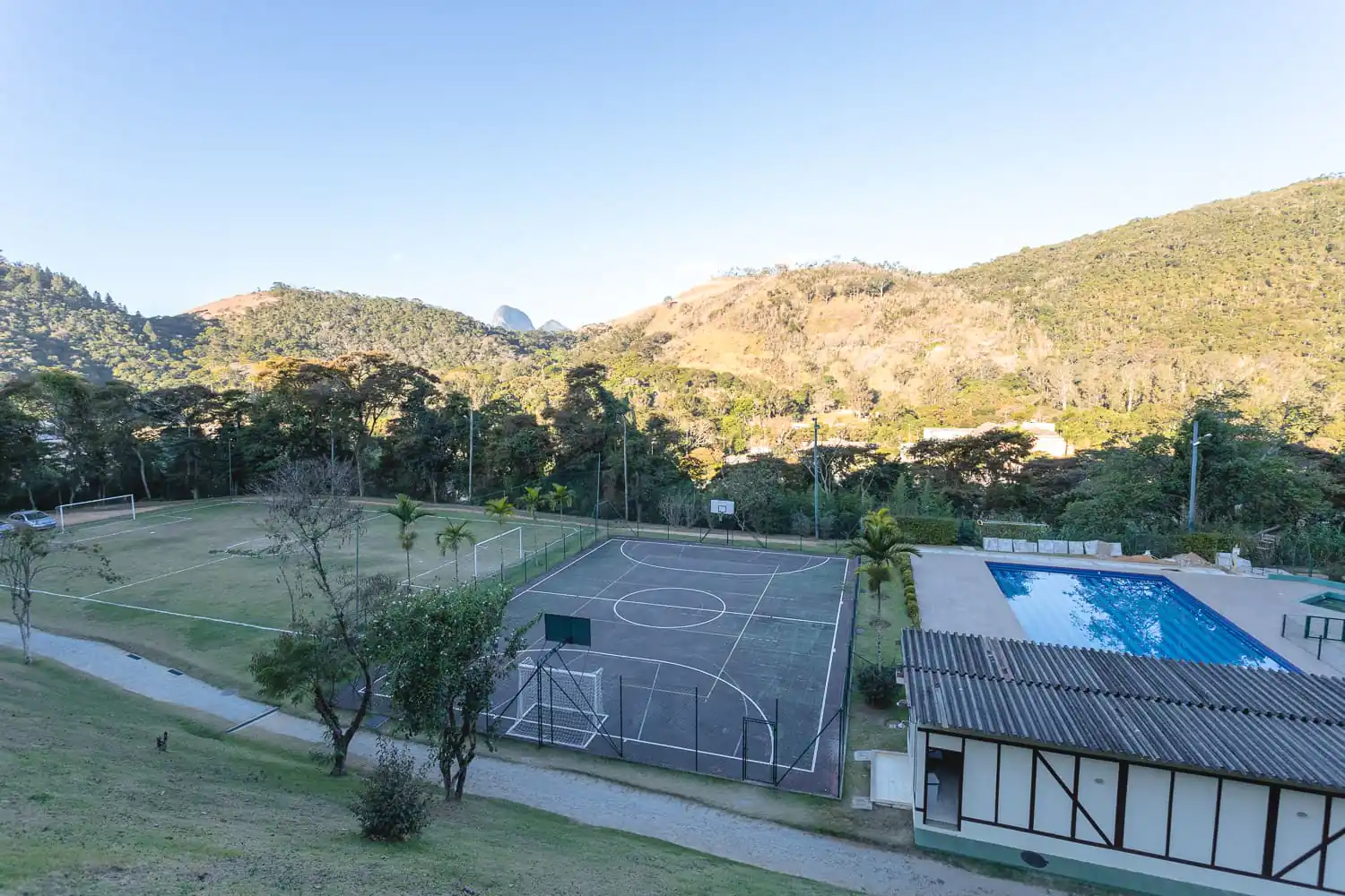 O condomínio oferece lazer completo com piscina, academia, quadras, trilhas, parquinhos e opções gastronômicas.