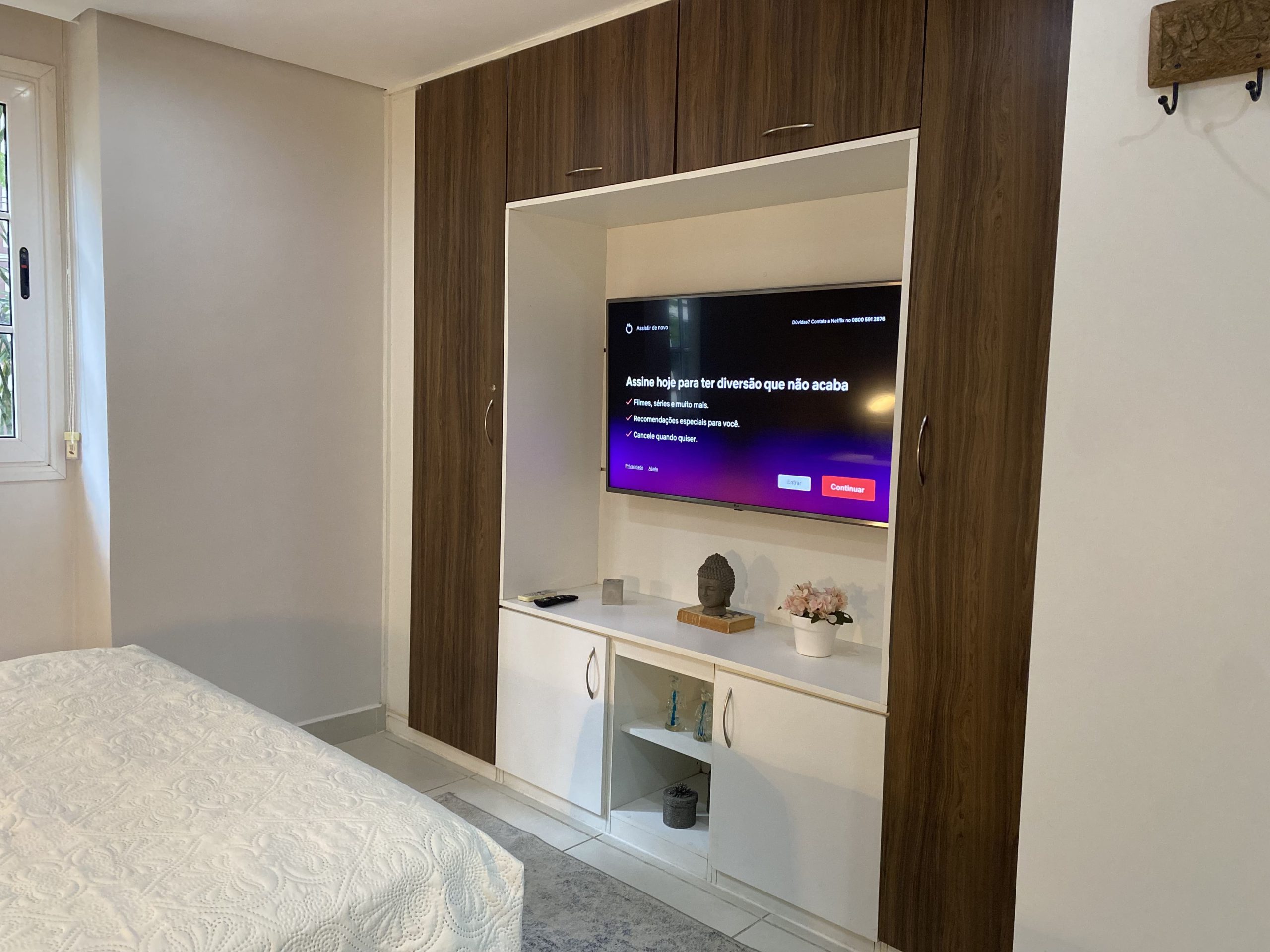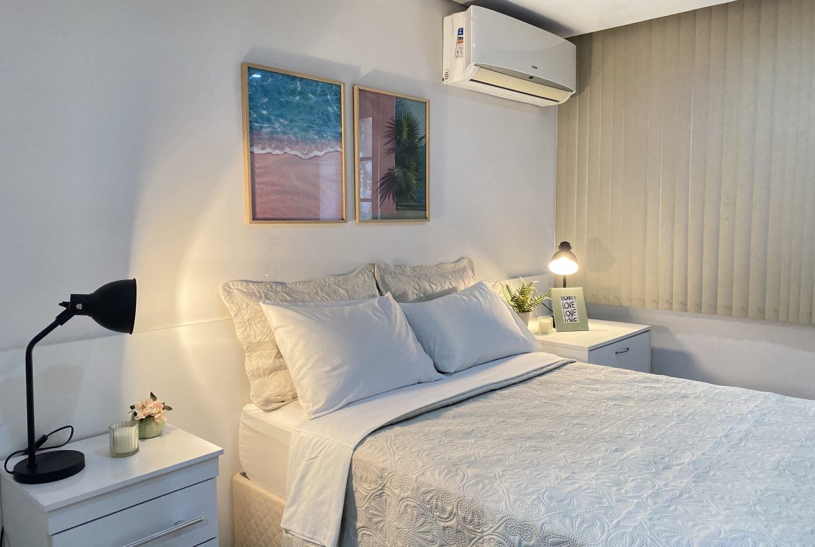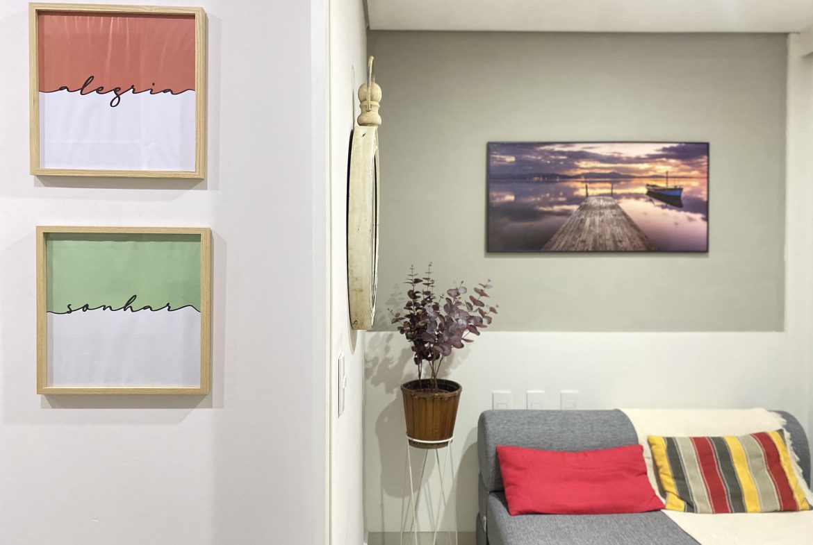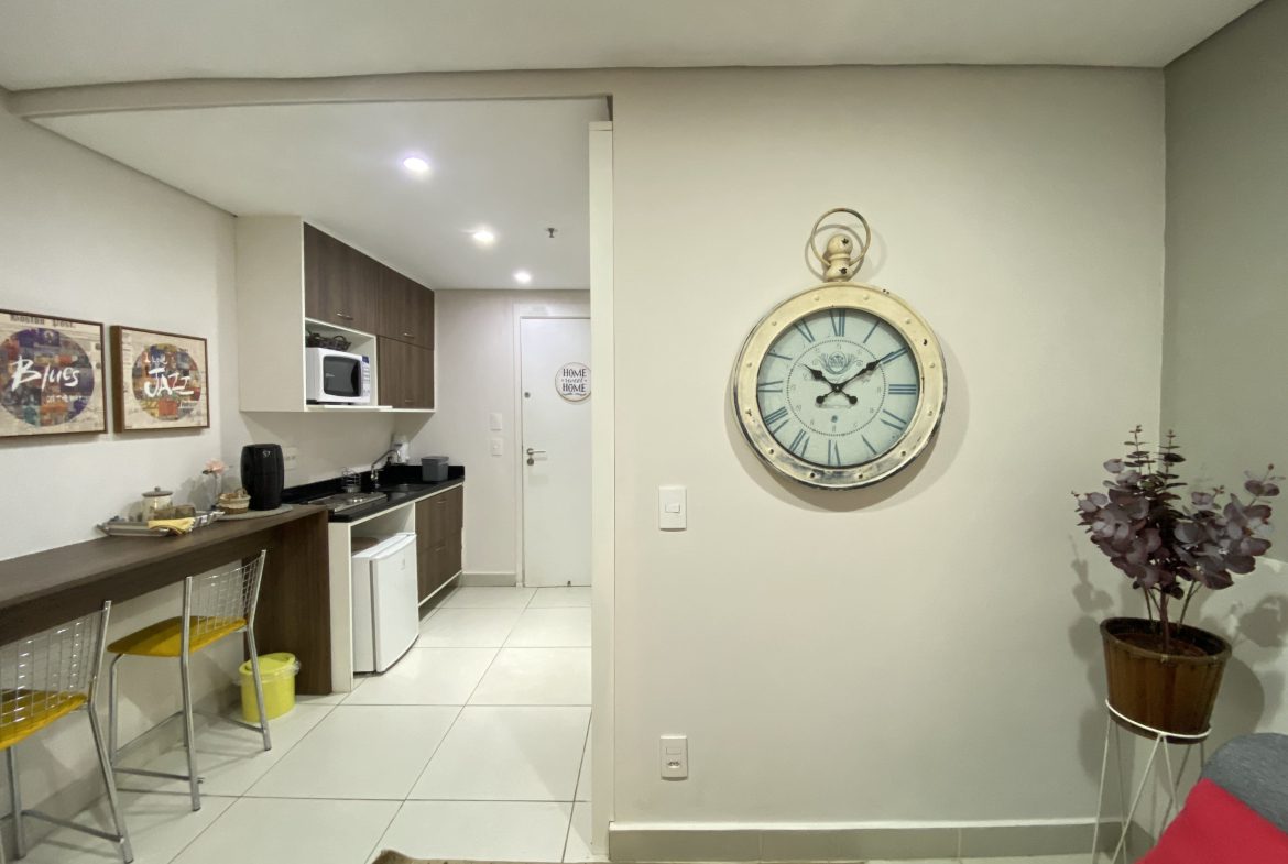 Este apartamento quarto e sala é espaçoso e conta com móveis planejados, além de uma área externa perfeita no condomínio.