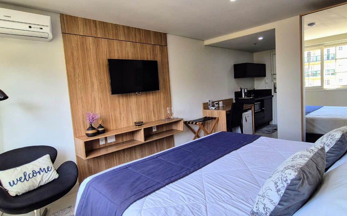 Aqui, a sua estadia transcende os limites do studio. Você terá acesso irrestrito a uma estrutura de lazer completa, que atende a todos os desejos e estilos de vida, permitindo que você desfrute de tudo sem precisar usar o carro.