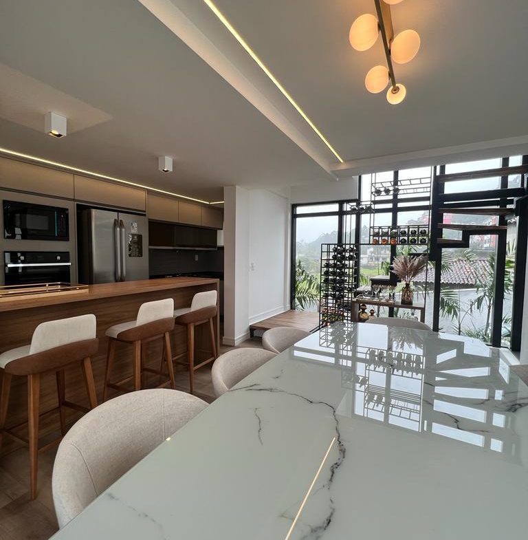O SUMMIT também inclui um espaço generoso para home office, integrado à sala, cozinha e área externa, tornando o trabalho em casa mais confortável e produtivo. As três suítes no segundo pavimento se destacam pelo conforto, praticidade e sofisticação.